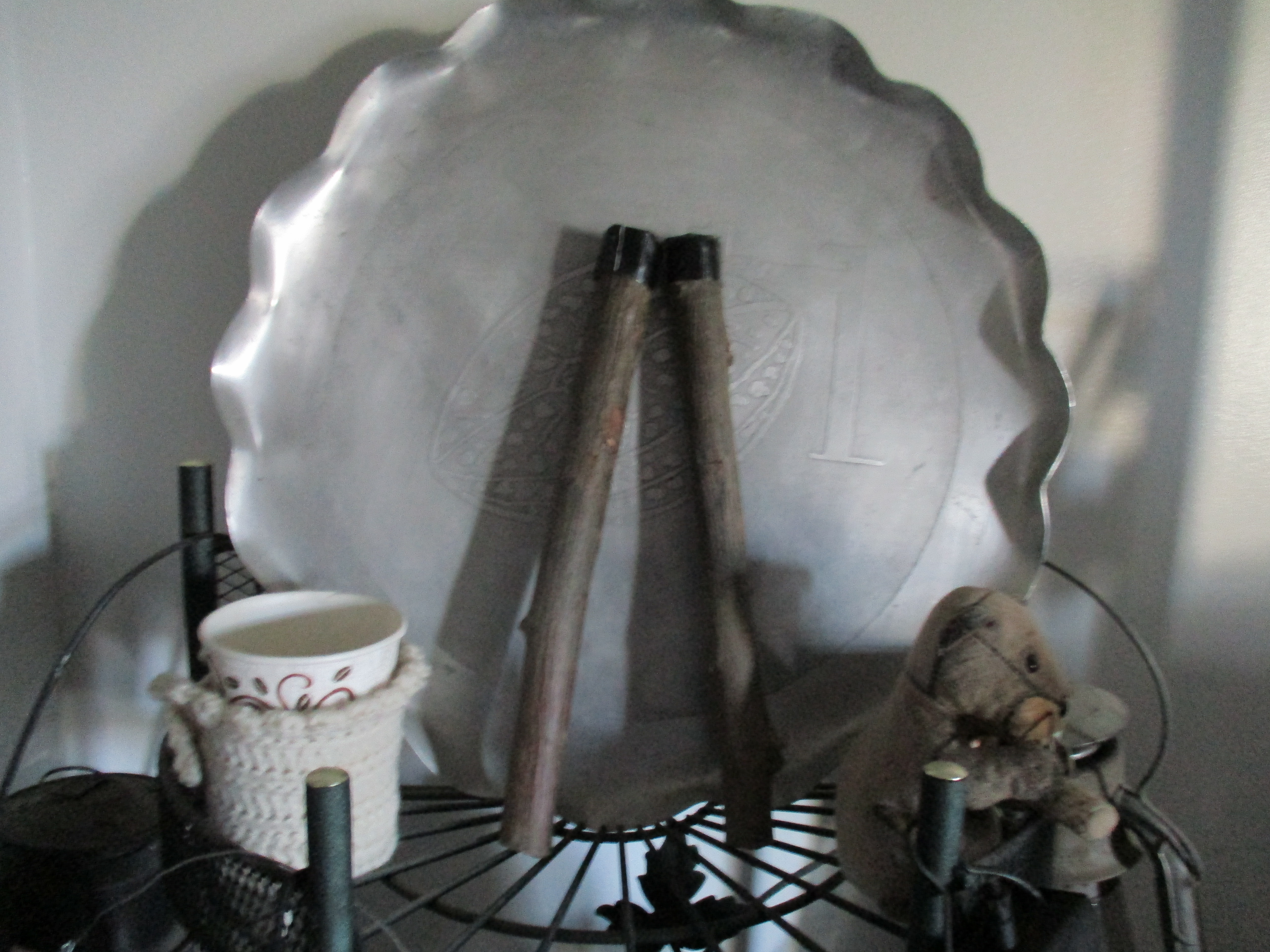 The sticks in the above photo are what we use to poke holes in the ground, through the lattice, to put the cloves in. My husband cut these for us last year when the soil was wet and clumpy. They make a hole that is just the right size and depth for planting the garlic clove. When they are not being used for planting garlic, they are at home, on display, in our living room, so we know where to find them next year.