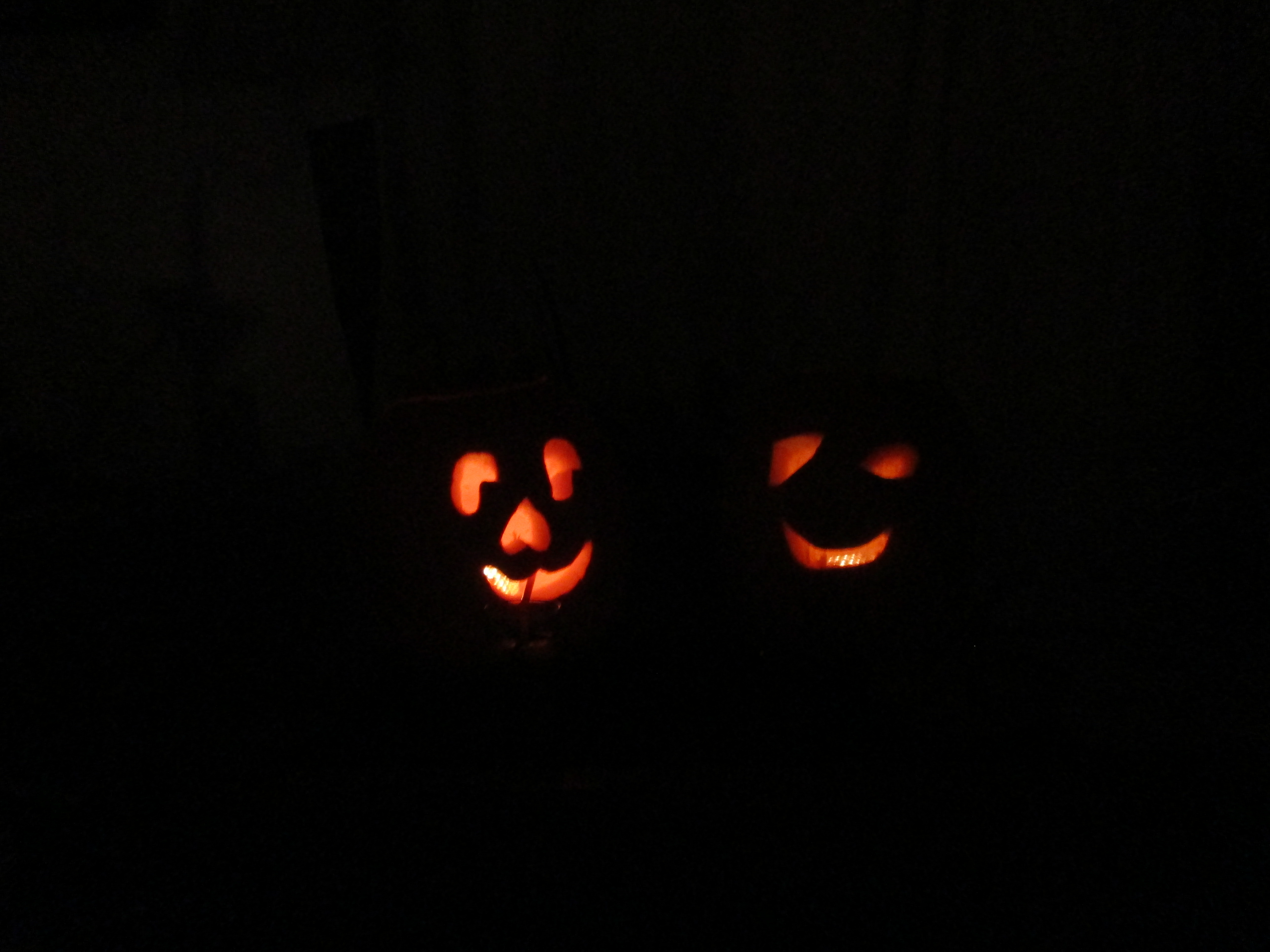 I thought our jack-o-lanterns turned out cute. Mine of course was the female looking one, while his was the masculine one. We didn’t plan it, but I though it was cool the way they appear to be looking at each other.