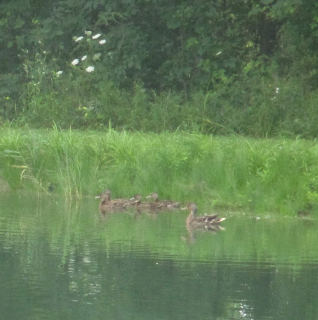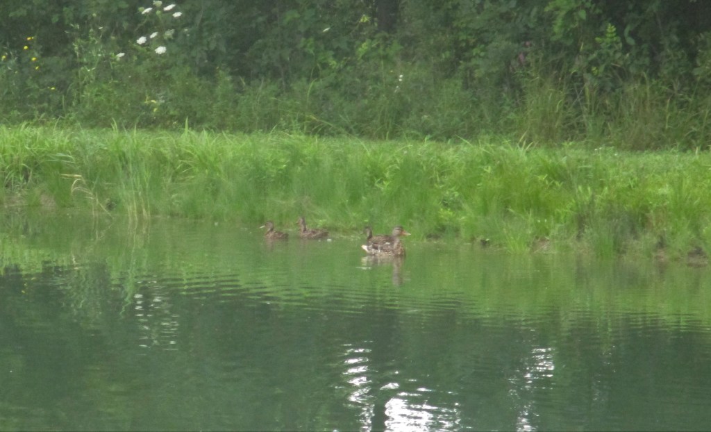 It was around the first of August that my husband came home from the farm and told me that there was a mother duck with four babies swimming in the pond. “No daddy,” he added.
