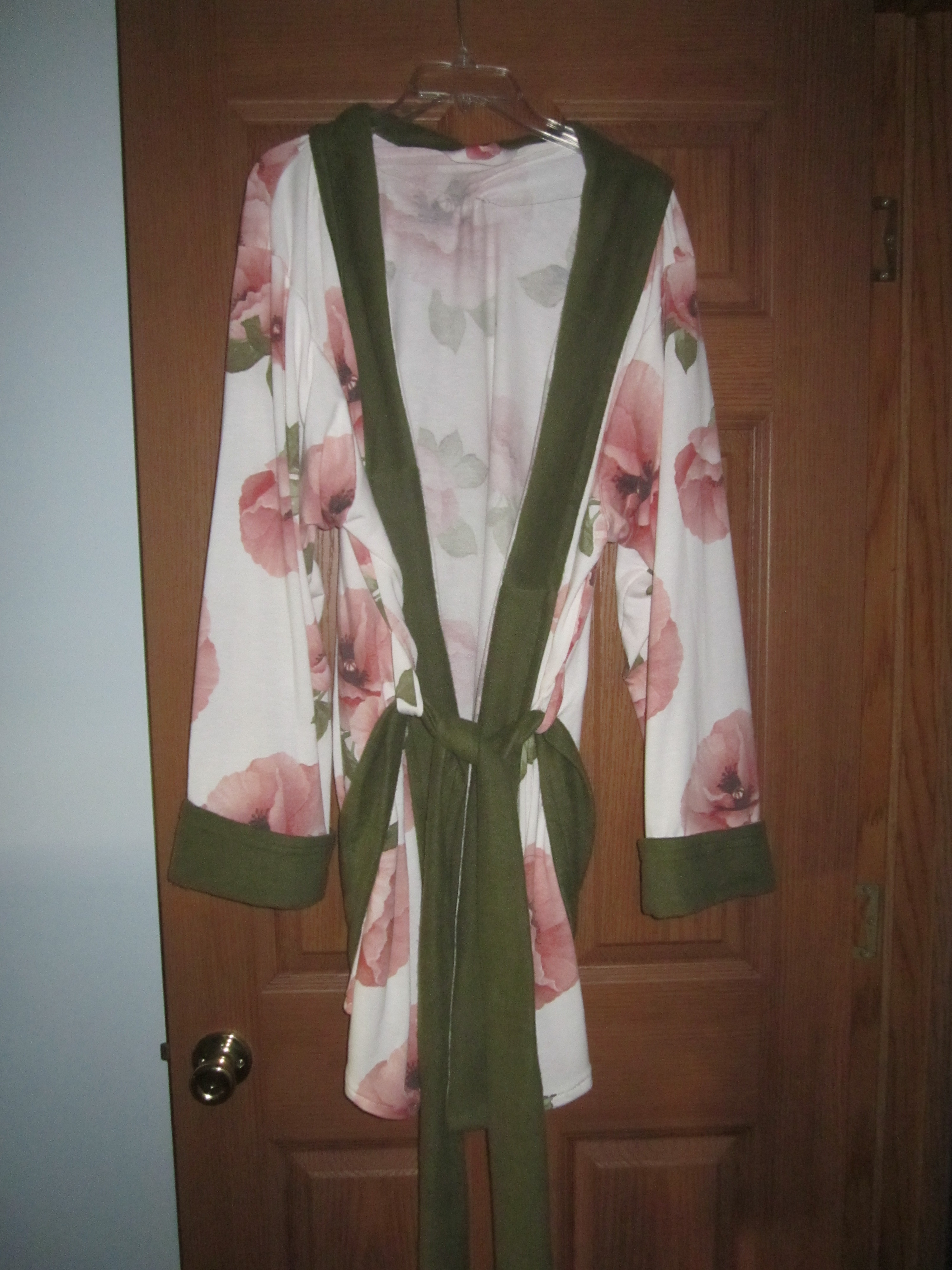 As I was making the robe I would try it on for size and in doing so discovered that as beautiful as this print is it looks horrible on me. Thankfully when my sister put it on it looked gorgeous – elegant, like I had imagined. ” I don’t know if I love it so much that I won’t want to wear it” she said, “or if I love it so much that I will wear it all the time”.