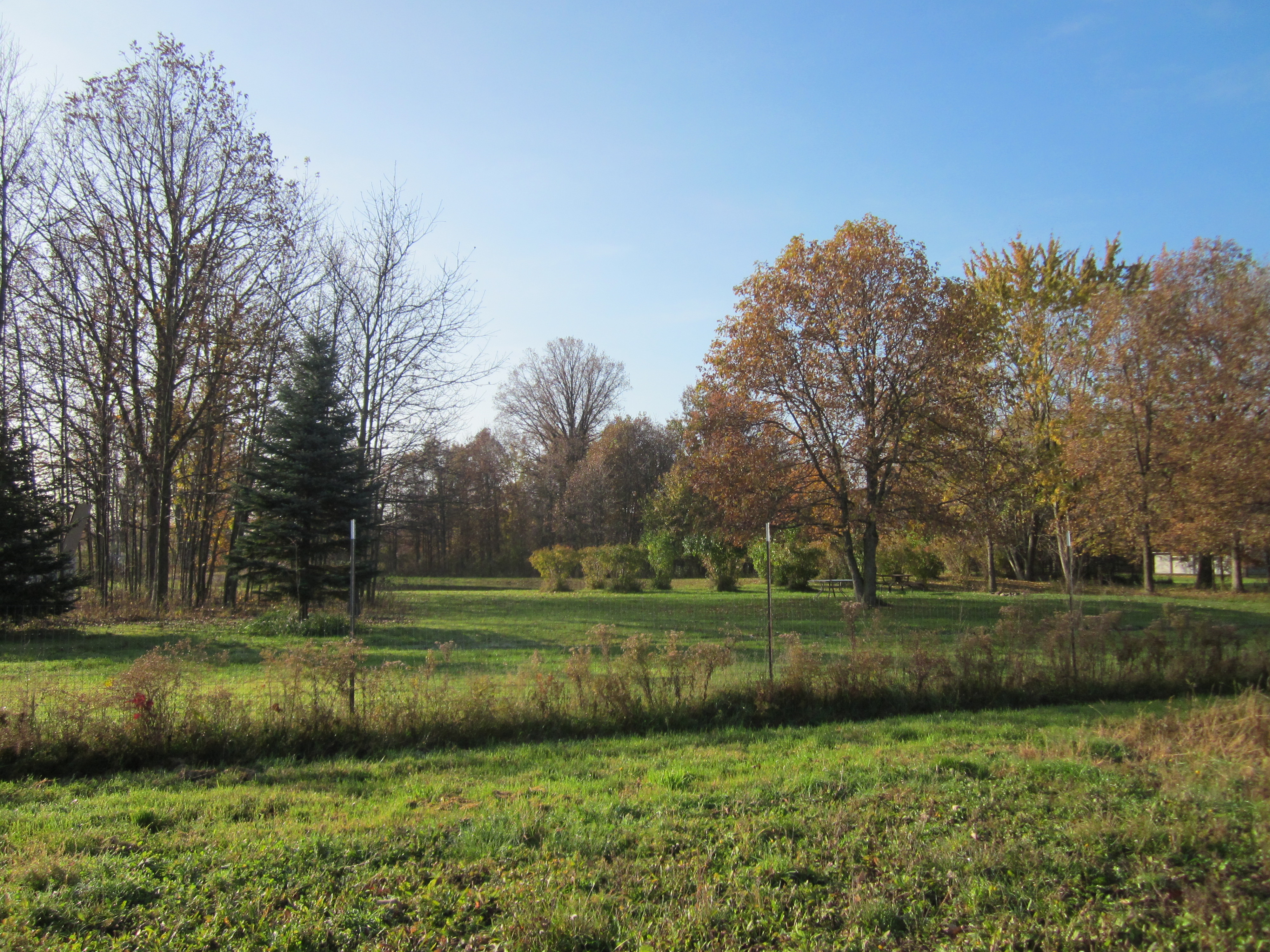 It was a beautiful fall morning. When we went out, around 10:00 A.M., the sun had melted the heavy frost that had blanket the area in the early morning hours. Our feet/shoes got wet as we tromped though the grass.