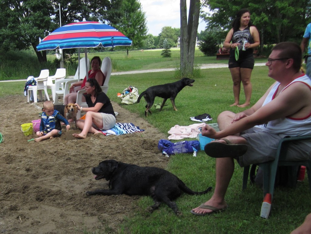 When we adopted Ruby from the shelter we were told that she had not been well socialized and took a while to warm up to people. While at times this may be the case, she had no problem socializing with people and other dogs when we had a family picnic at the farm.