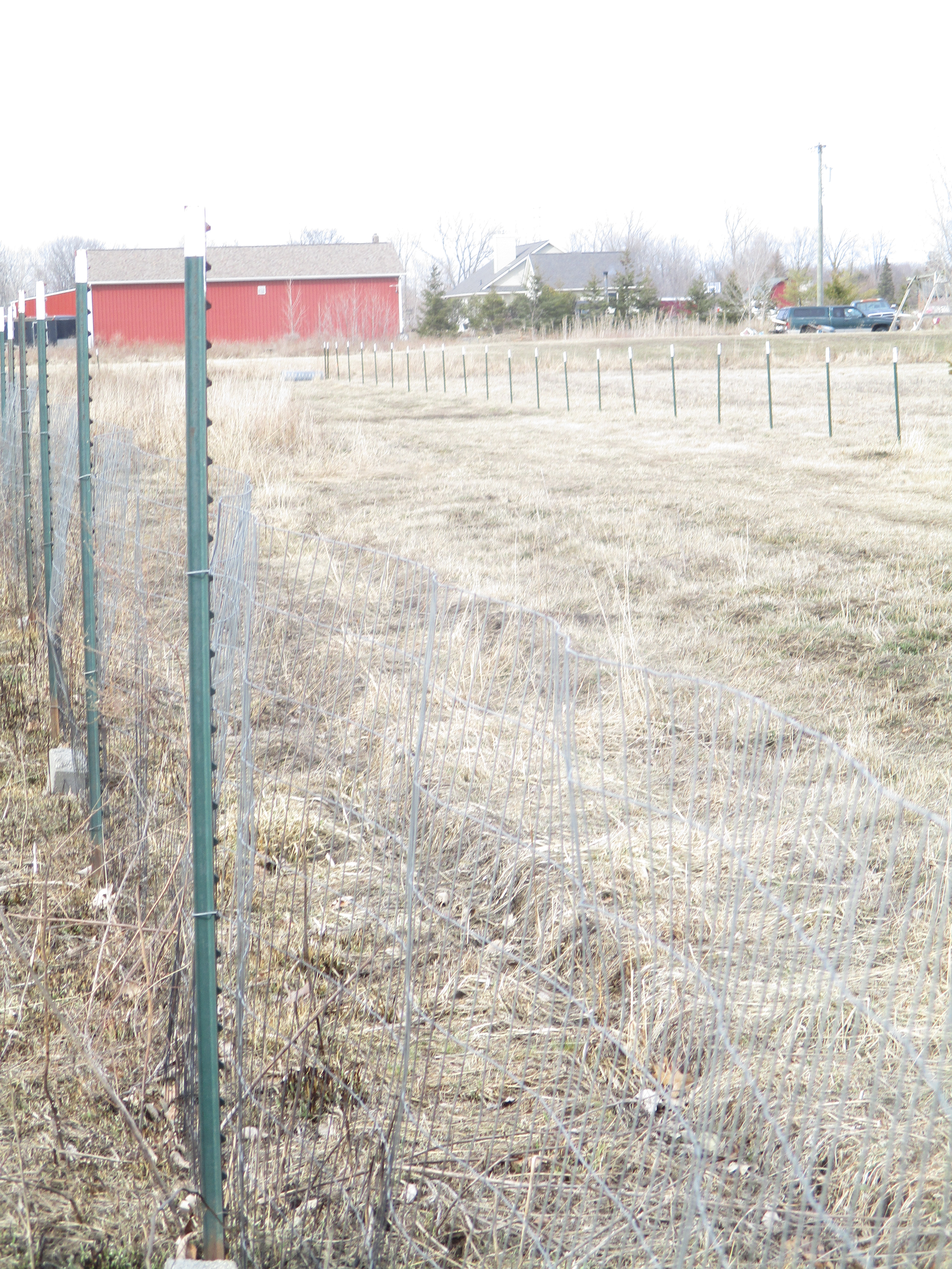 The small fence posts in the above picture line the east side of our back field. He has the entire back field fenced at this point and is working diligently on completing the front of the property.