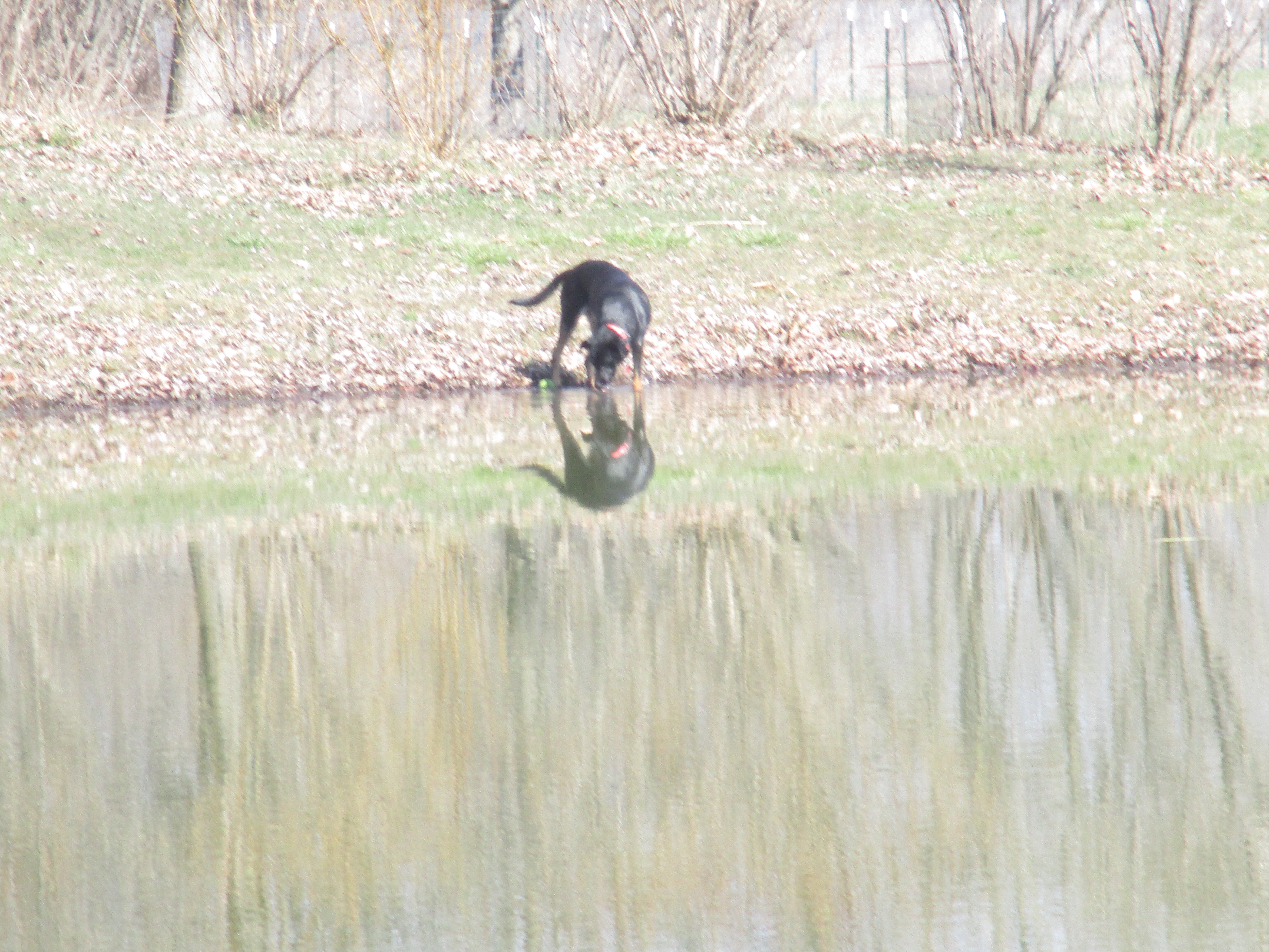 Ruby did not hesitate to get her feet wet as she enjoyed a cool drink from the pond.