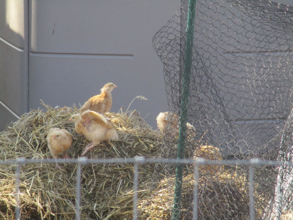 The chicks are doing well at the farm, feathering out nicely, learning to forage