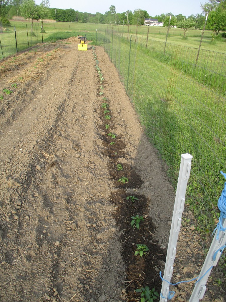 We waited until the last weekend in May, Memorial Day weekend, to begin planting our garden. It was a good decision since our last frost was earlier that week. On Saturday, May 27, we managed to get 48 tomatoes, 24 peppers, 24 cabbages, 12 broccoli and 12 cauliflowers planted – all plants that we had started from seed.