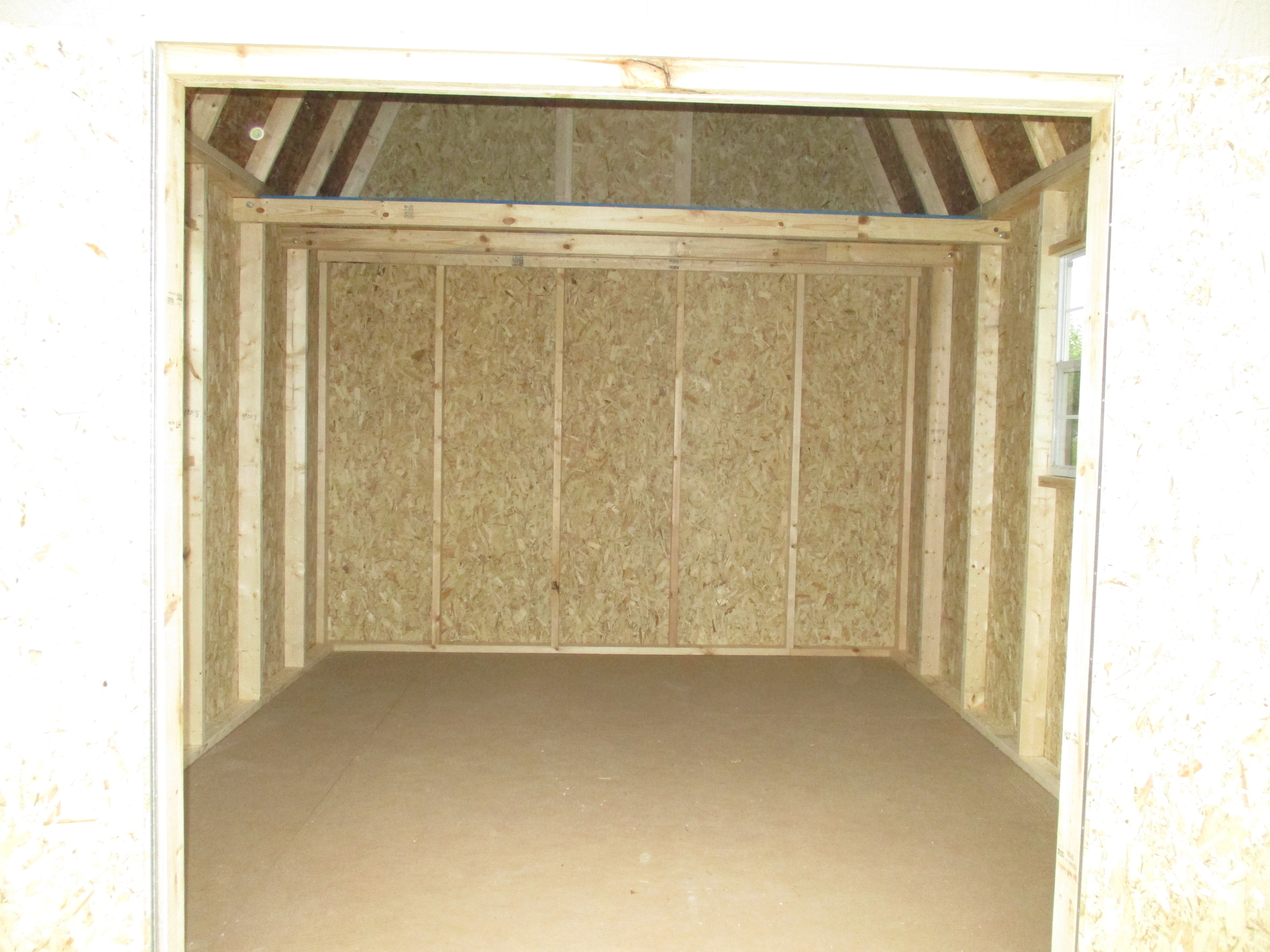 It looked quite big inside until we started putting stuff in it. LOL. The loft provides extra overhead storage space. We had a few upgrades added to the base package. They were – the solid wood floor (instead of osb), the three windows, and the five-foot ramp at the entryway that will make it easier to bring in equipment with wheels on it.