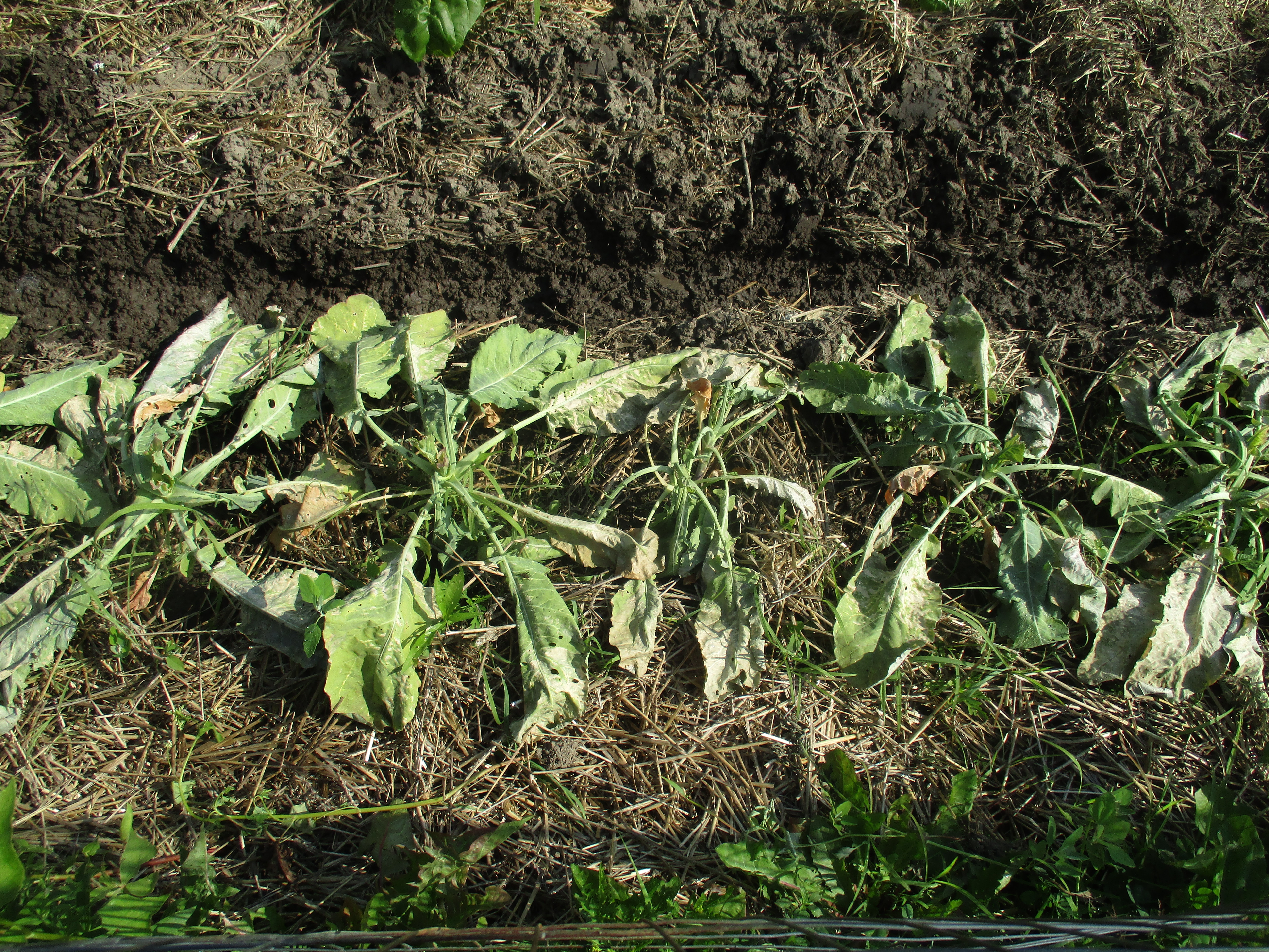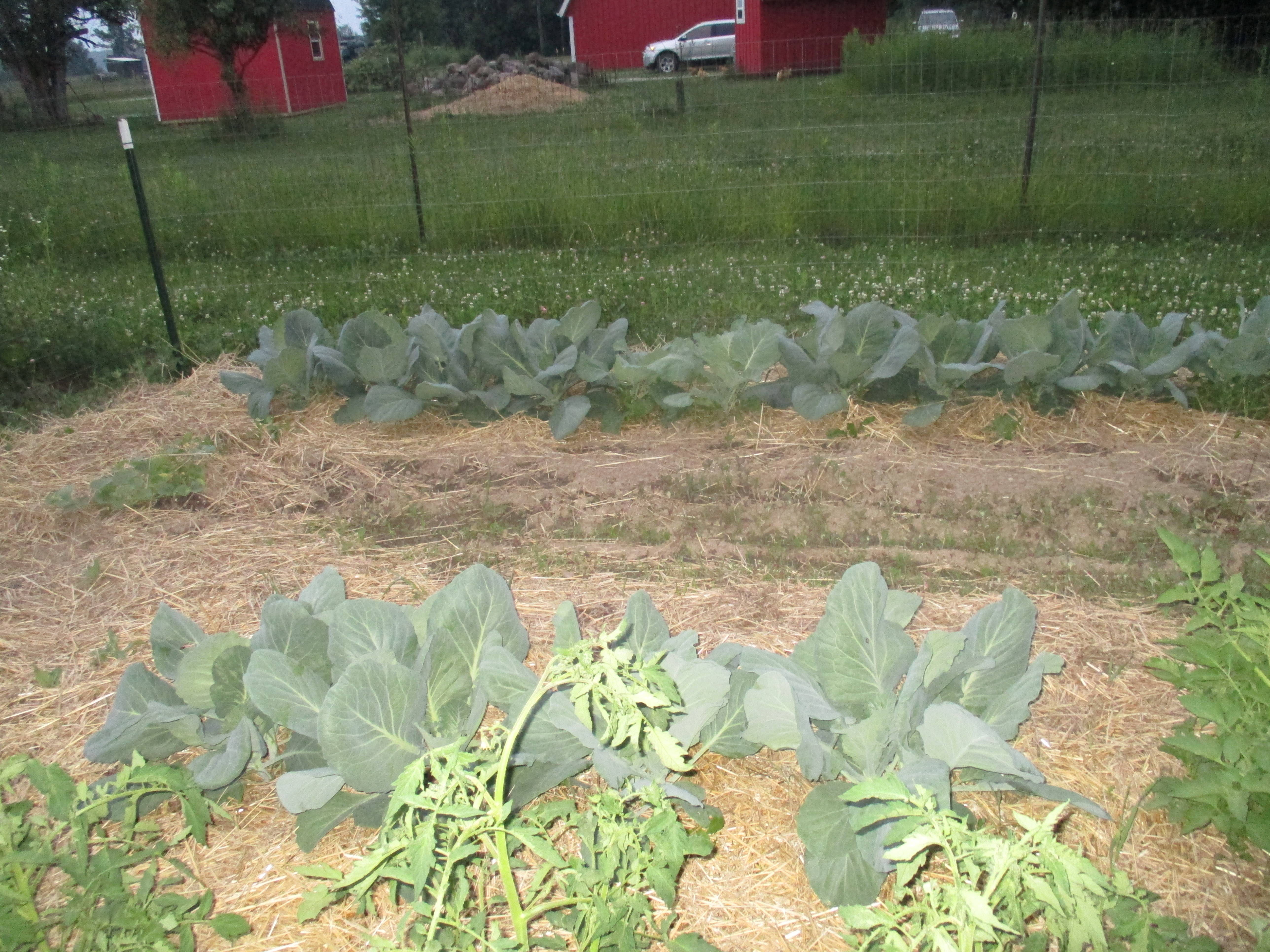 In the last several weeks we have had more than enough rain. The ground is saturated, and our brassica vegetables are suffering because of it. You might remember as we wrapped up June our gardens were looking great, especially the cabbage.