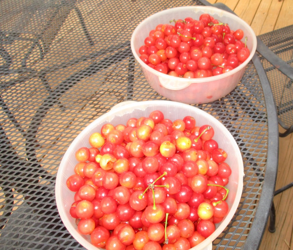Our cherry crop, on the other hand, was fabulous. I think I have 10 quarts in the freezer now and have made 4 pints of cherry juice. My husband finished picking all that we wanted then my sister came and picked about 4 more quarts. We left the ones we couldn’t reach for the robin family that is nesting in the maple tree nearby.