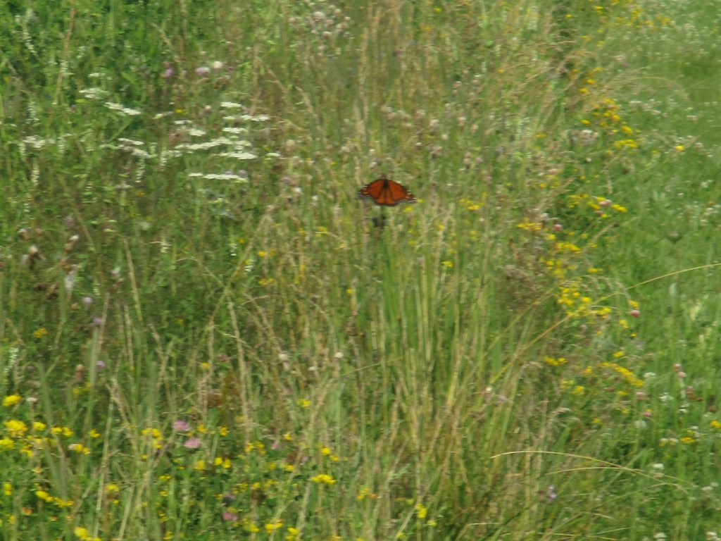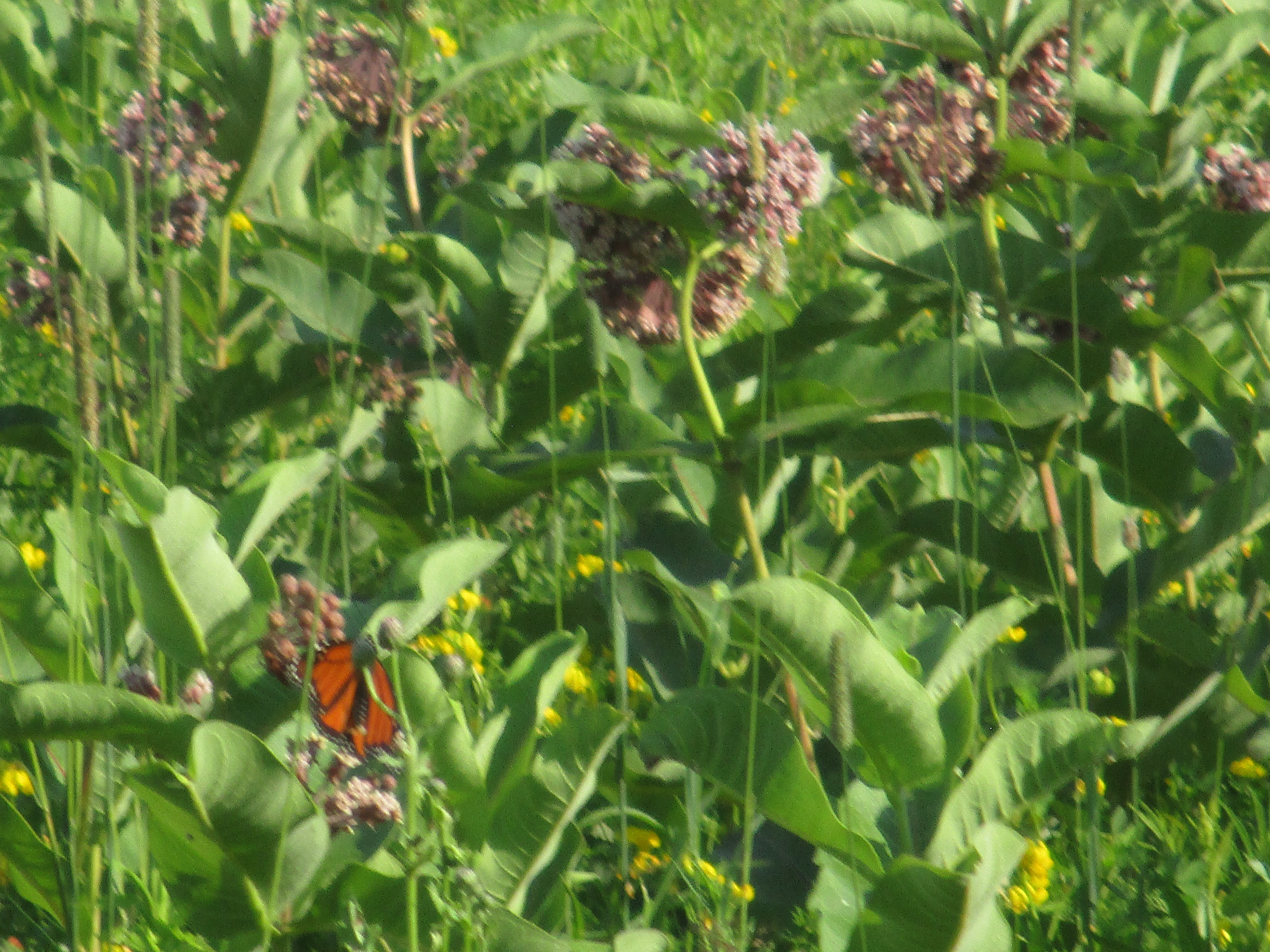 We often see the monarchs fluttering above and around the patch of milkweed. There are many.