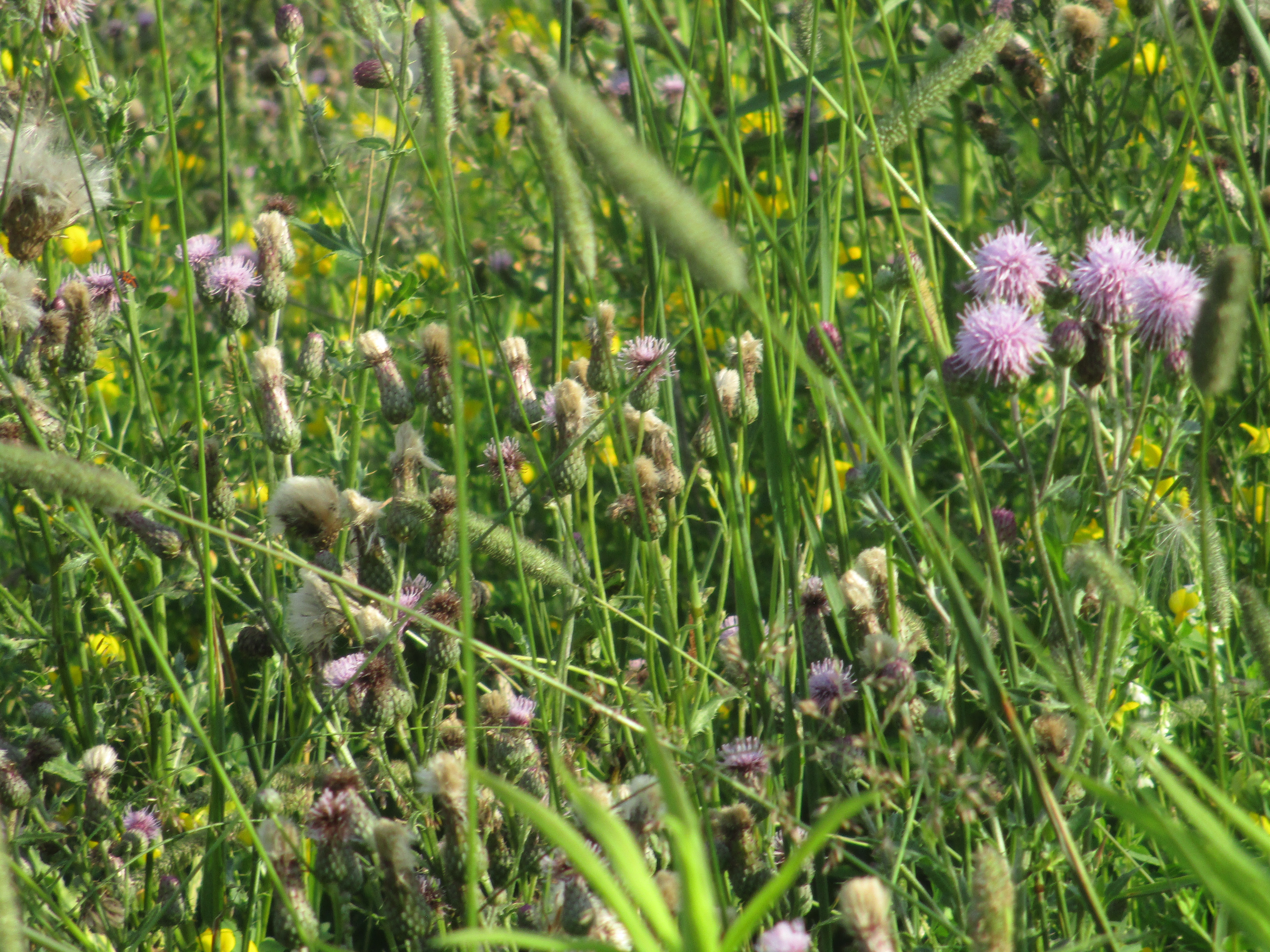 Canadian thistle also attracts bees and other pollinators for its nectar. As it goes to seed I expect we will see goldfinches in the field as thistle seed is a favorite food of theirs.