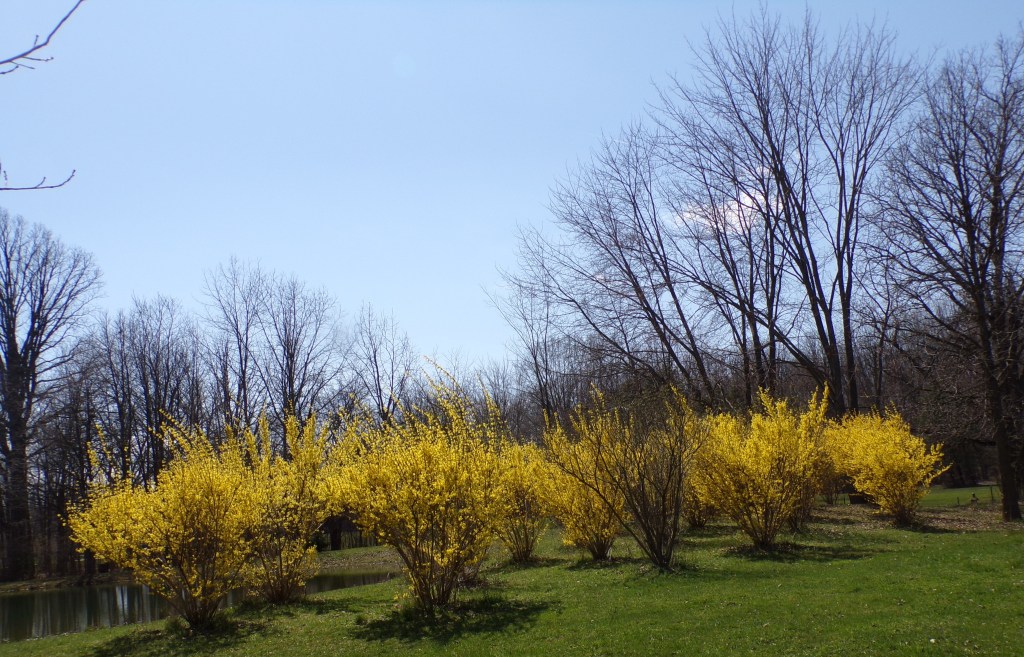 One of my favorite parts of spring is when our forsythias are in full bloom as they are right now.