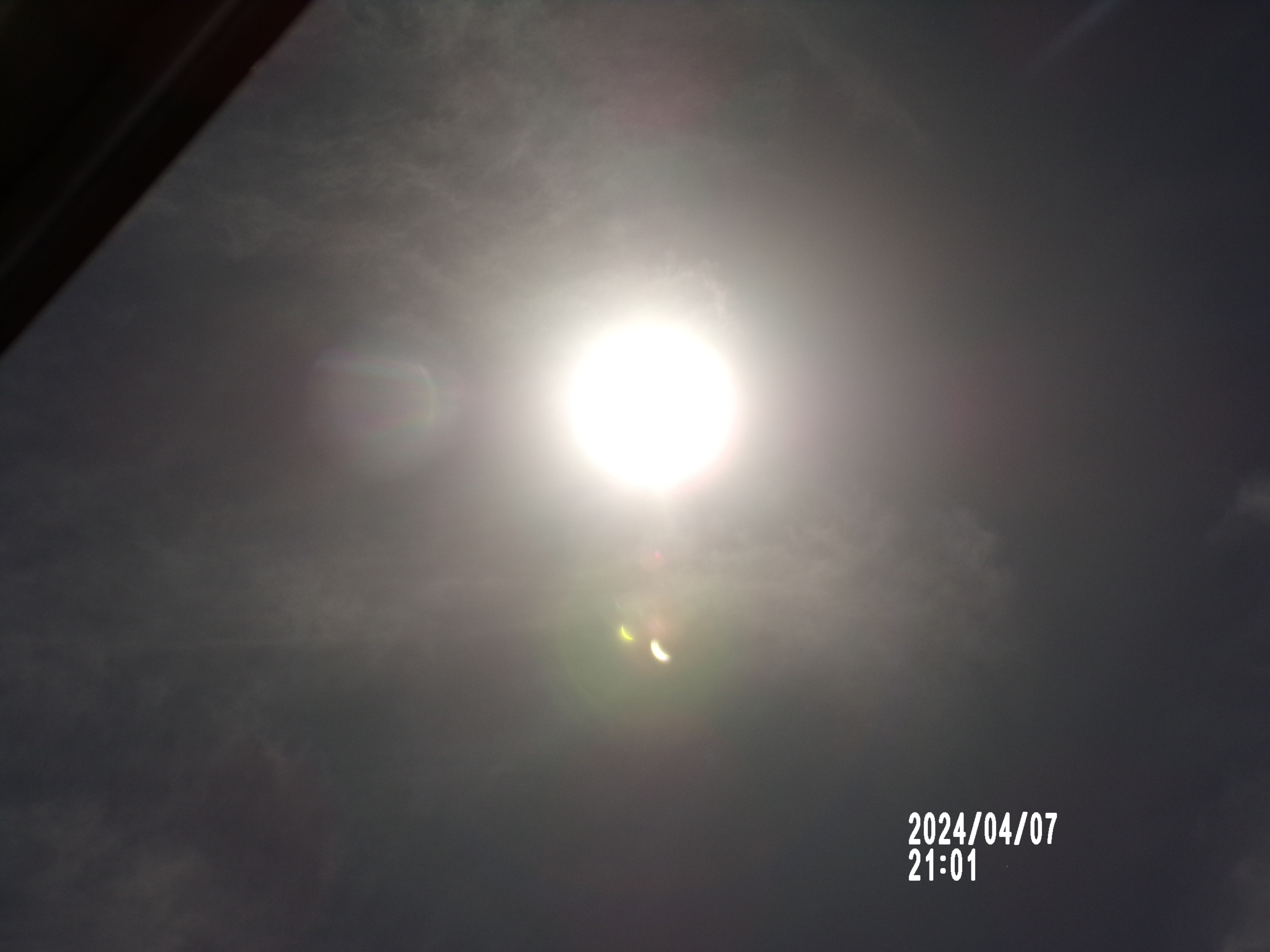 I stood under the barn porch and without looking I aimed my camera toward the sun to take some pictures. After I had taken several my husband told me that doing that could have ruined my camera because I was supposed to have some kind of filter on it. Oops! My camera doesn’t seem to be any worse off than it already was and below is a photo of what my camera saw at 3:15 on April 8th.