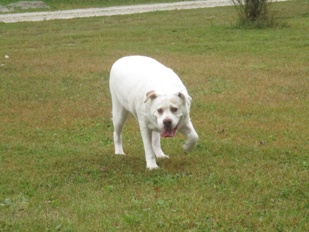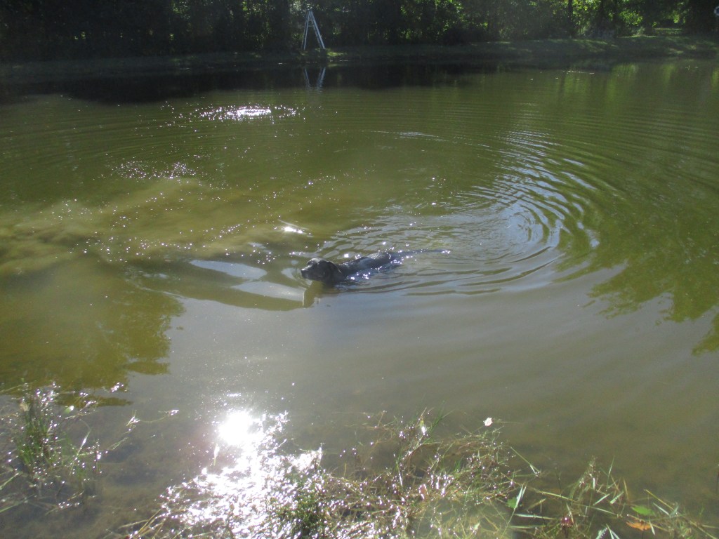 Ruby, who thinks she is the boss of the place, spotted the catfish and went in the pond to check it out. She swam between the catfish and one of them smacked its tail at her before they swam off. It didn’t phase her but I’m sure she was happy that they were gone.
