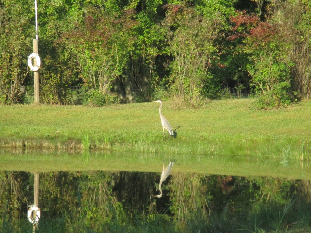 Monday morning when I took the dogs out for their morning romp, we were greeted by this heron who was enjoying brunch at the pond. It didn’t stick around once the dogs and I got out of the van. I do hope it had its fill.