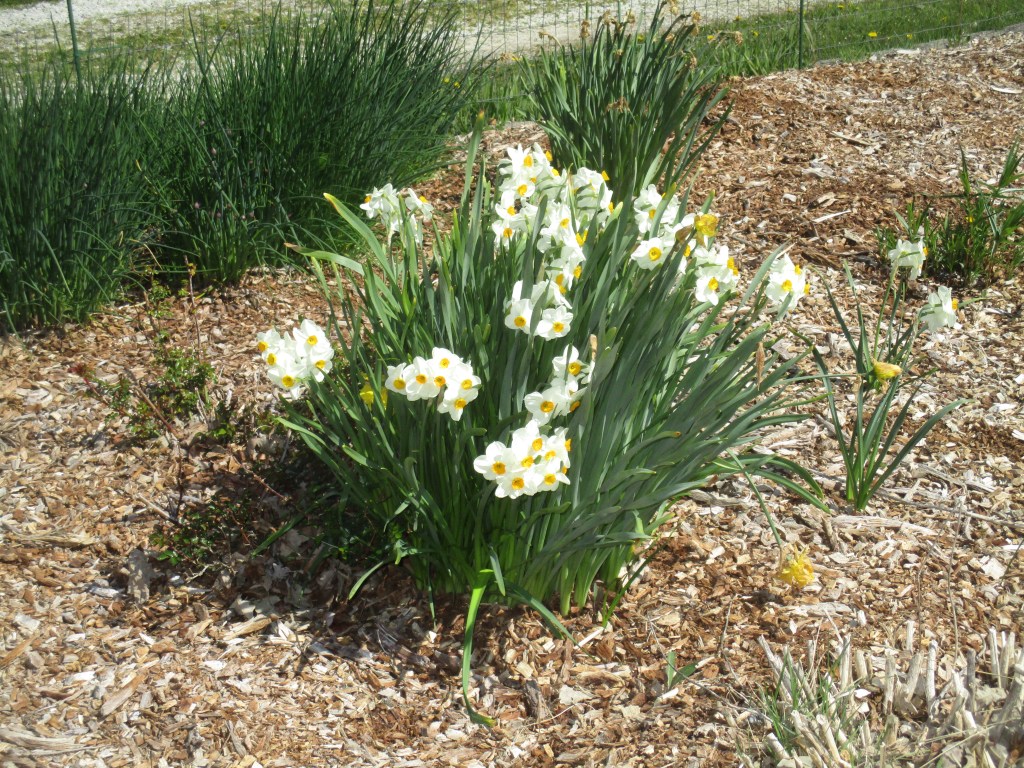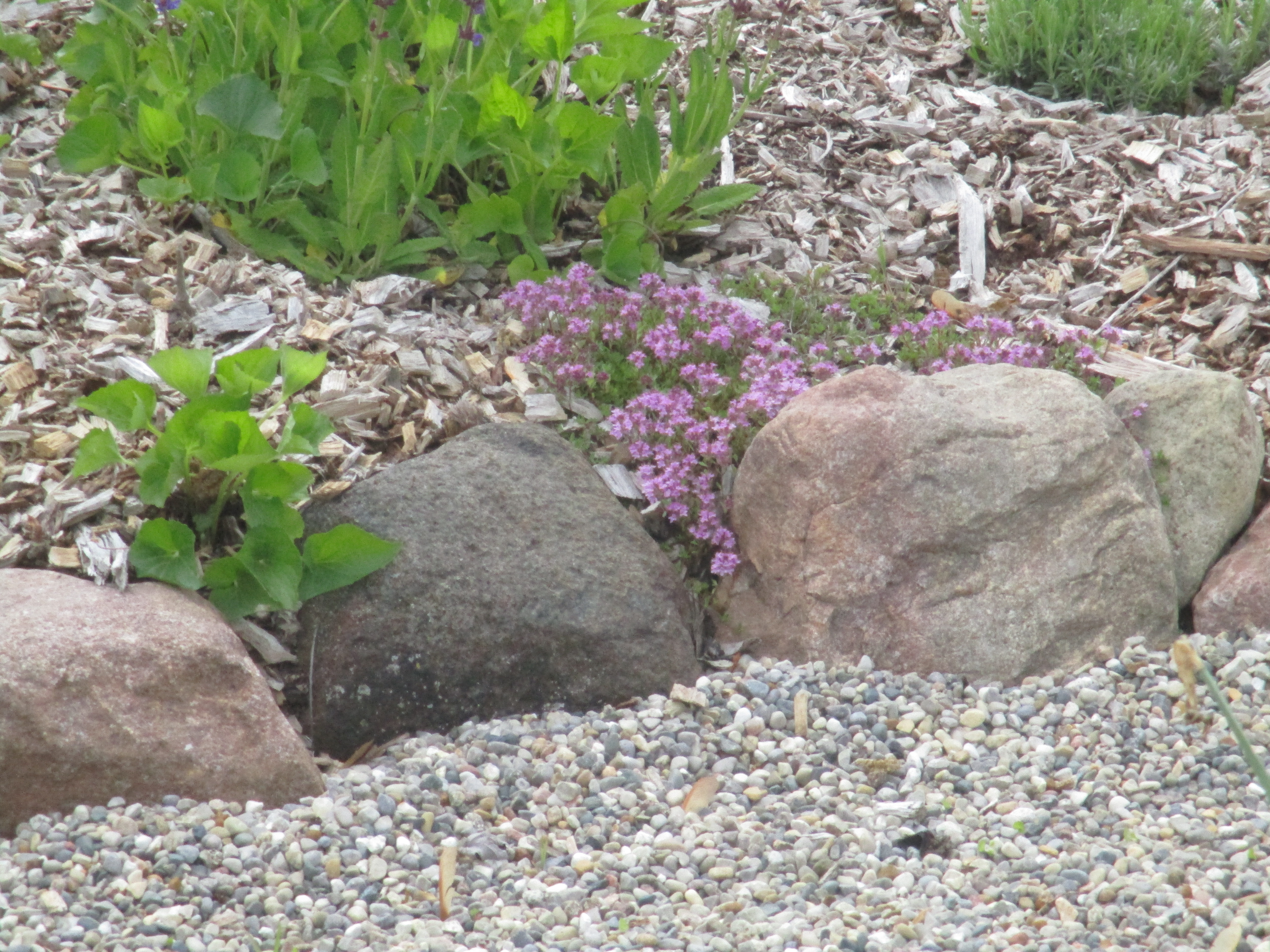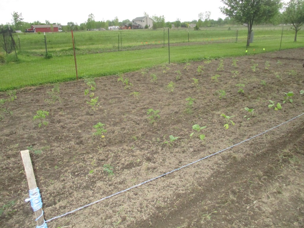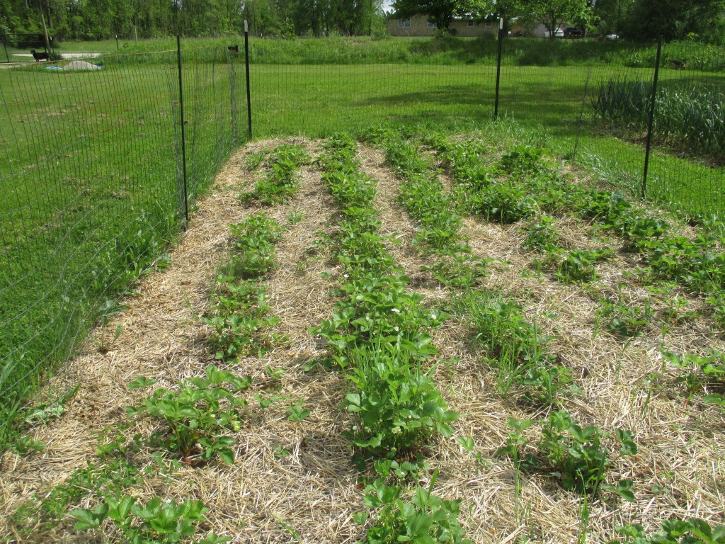 as is the strawberry patch. There are a lot of blossoms, some beginning to turn into berries. We should have strawberries in a week or two. YUM!
