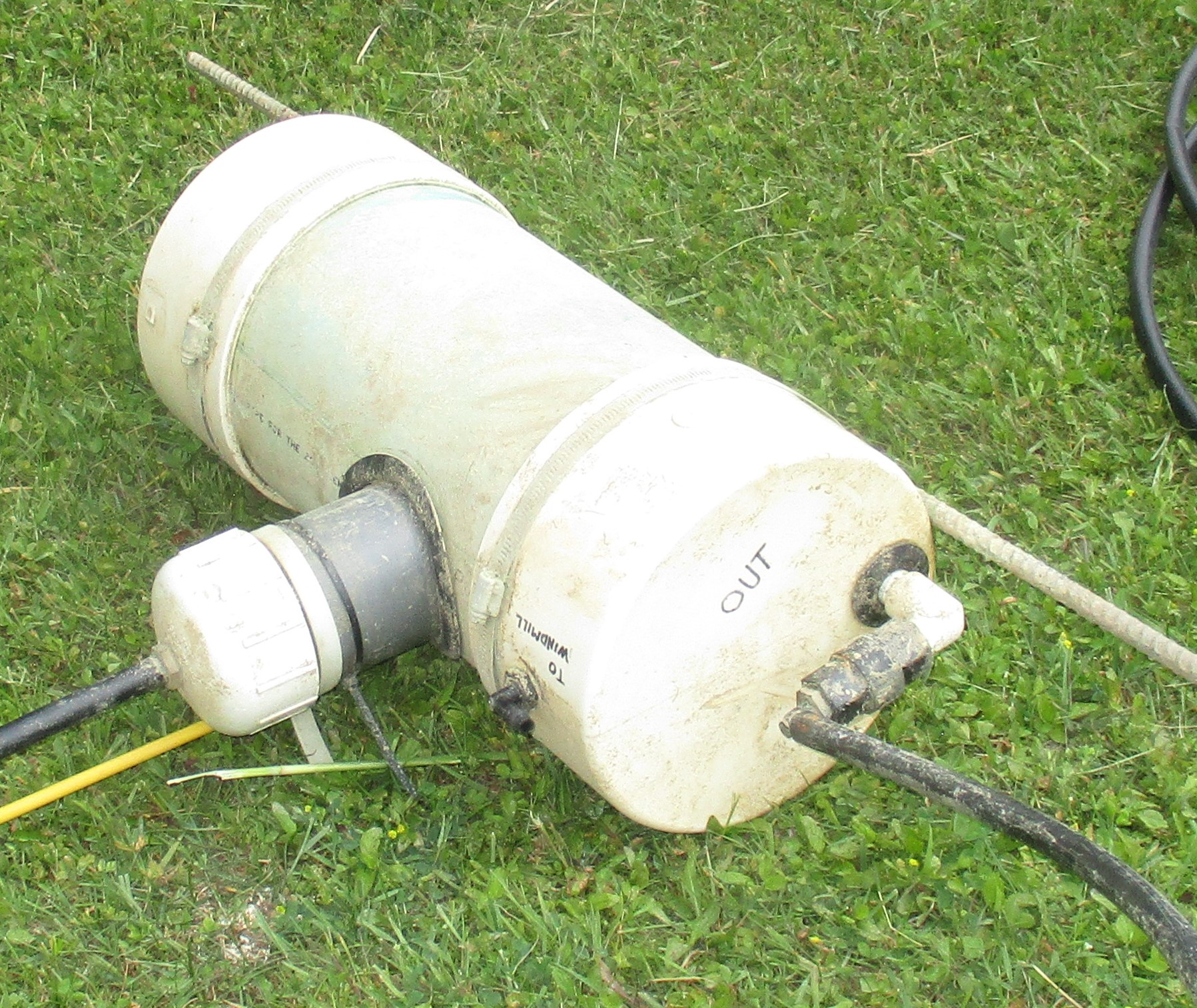 Notice there are two valves. The one to the left is marked “To Windmill” (the words are upside down in the picture). A hose attaches to that valve and the other end of it attaches to one of the valves on the windmill. We unhook one of the aeration hoses since we do not aerate and pump water out at the same time.