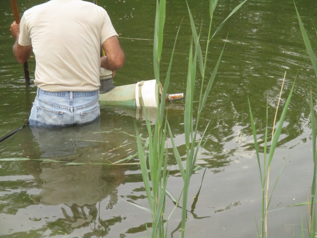 This year the water wasn’t too cold. The pump will be fully submersed in several feet of water