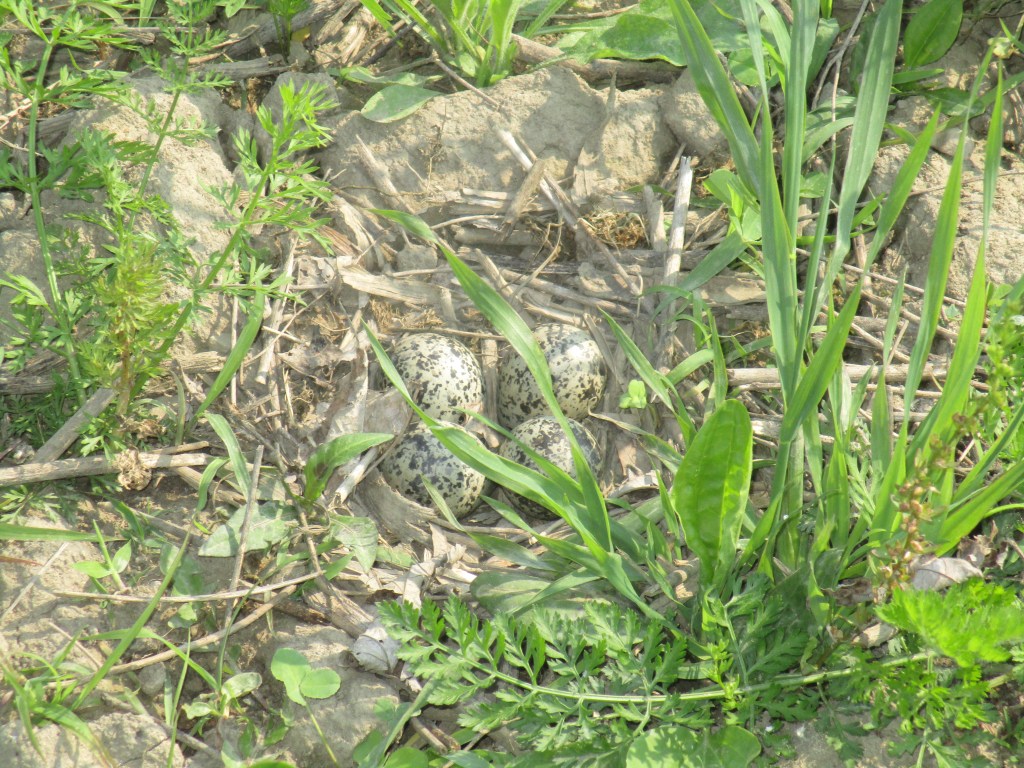 And about a week after that these four killdeer eggs, that are being incubated in an unused area of the garden, should be hatching.
