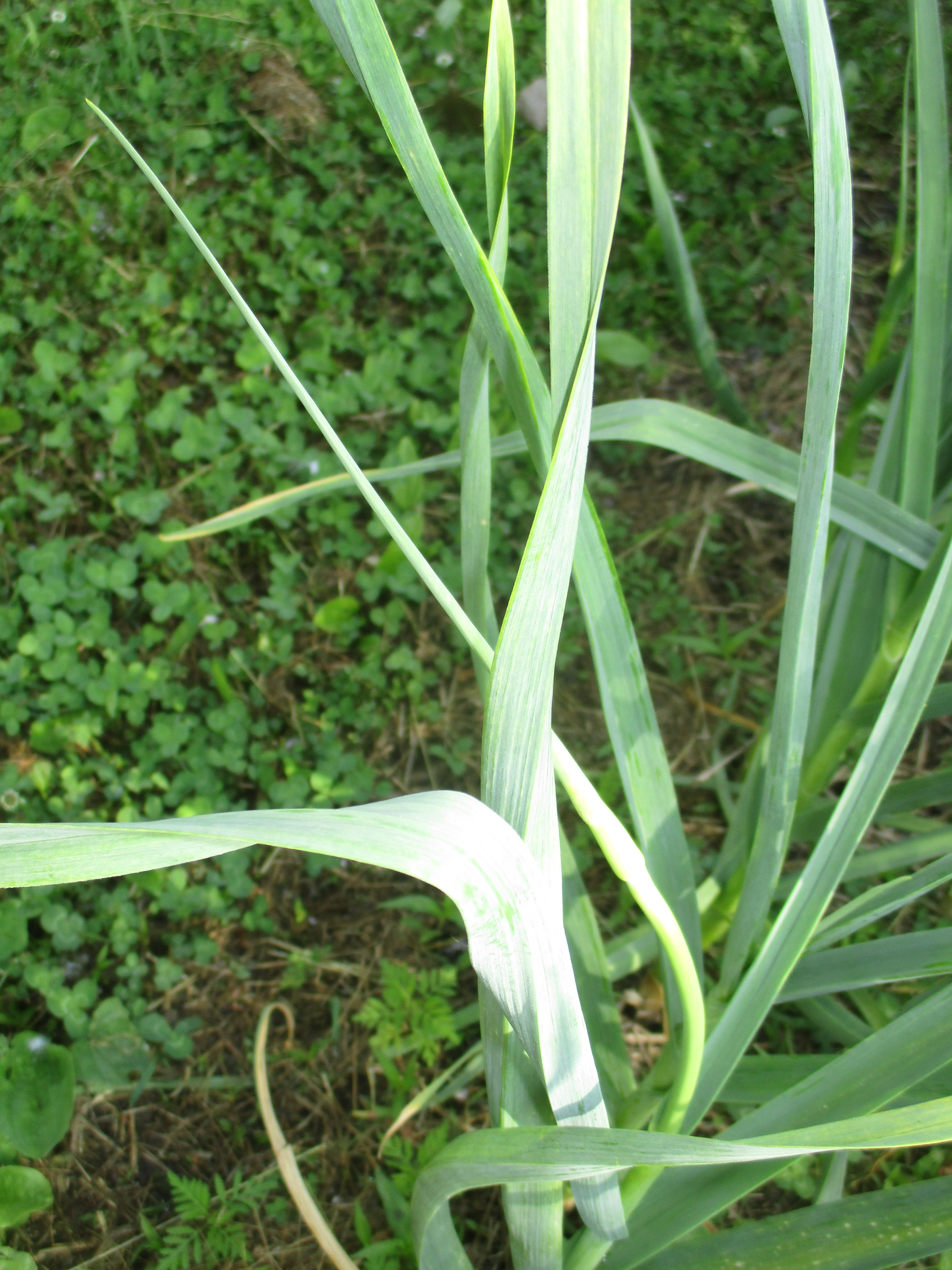 But we won’t be cutting garlic scapes for about a week. The scape is the light colored, curved shoot in the middle. They are just beginning to form.