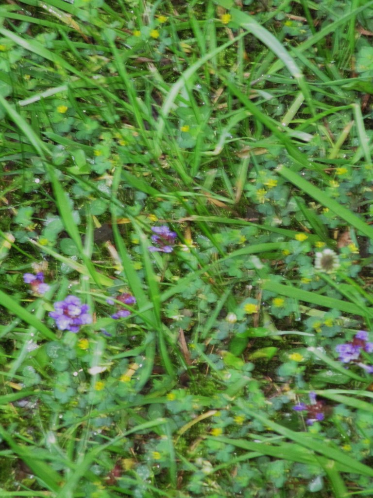 Mixed among the grasses you might notice wild plants such as selfheal (the purple flowers) and black medic (the yellow flowers). Both are edible and medicinal.