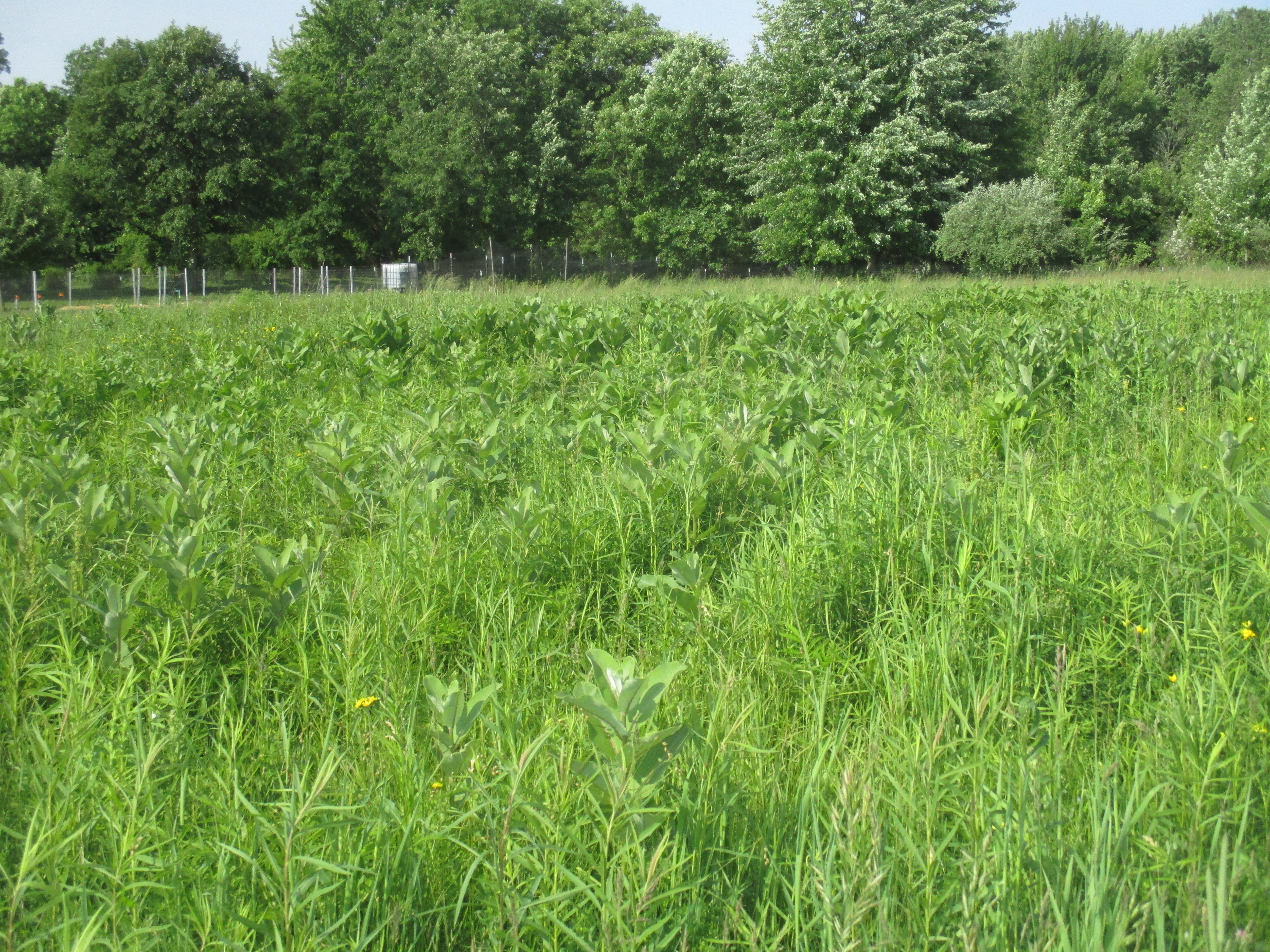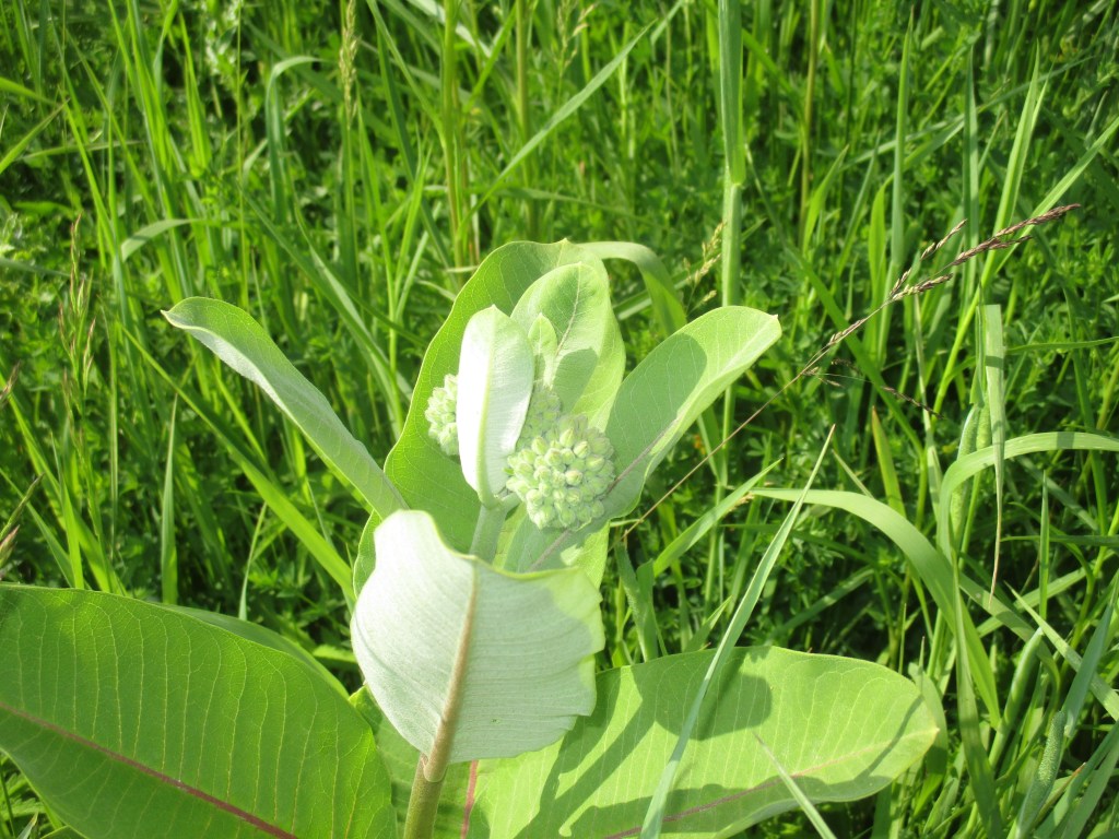 We have a large patch of milkweed in the back field. I have seen a couple of monarch butterflies in the area, so they likely have laid eggs as their caterpillars feed on milkweed leaves once they hatch.