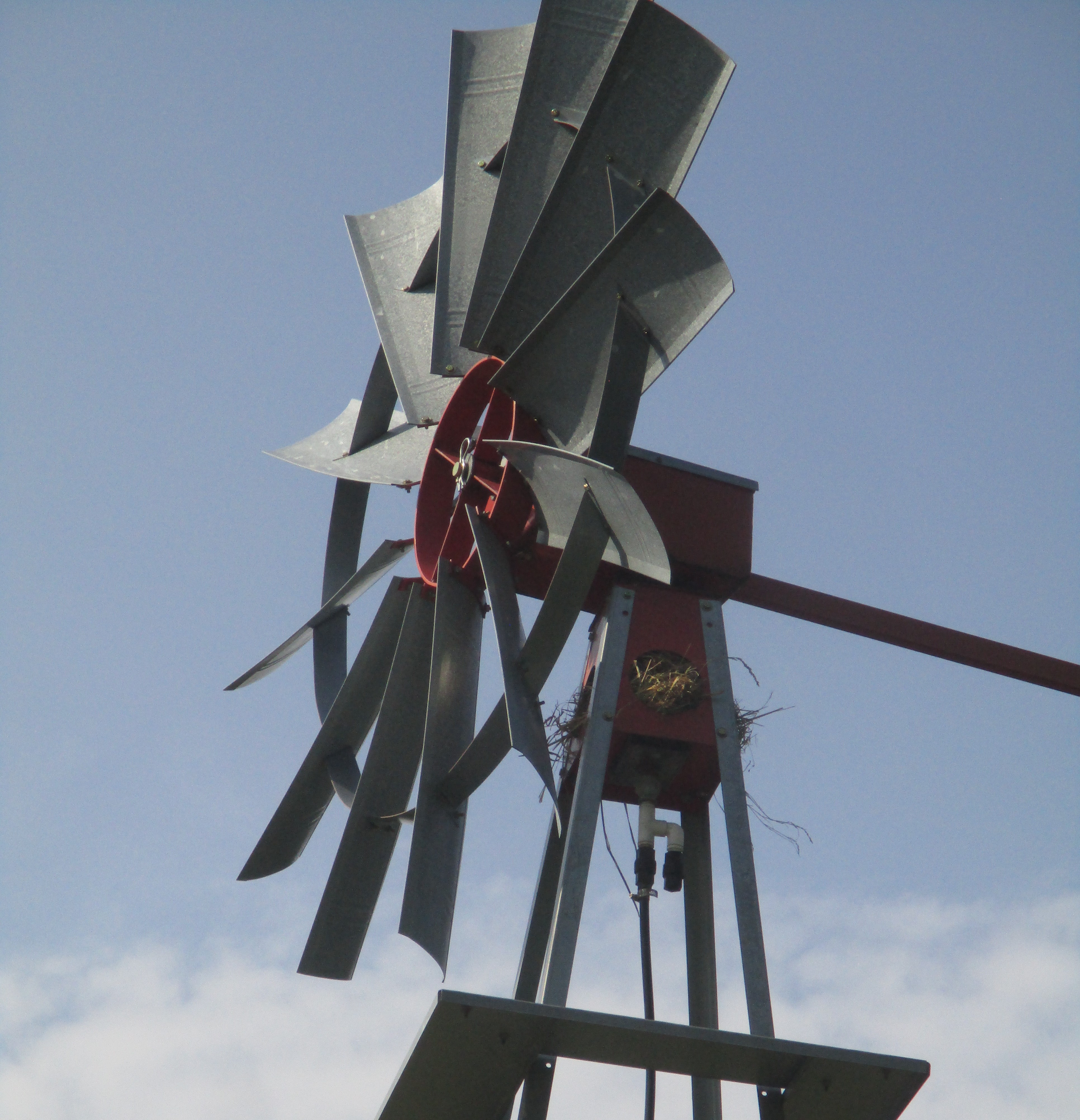 When we arrive back by the prayer garden my husband points out the nest that some birds (sparrows I think) have built in the top of the windmill. That was not there two days ago. Fortunately, it does not interfere with the operations of the windmill.