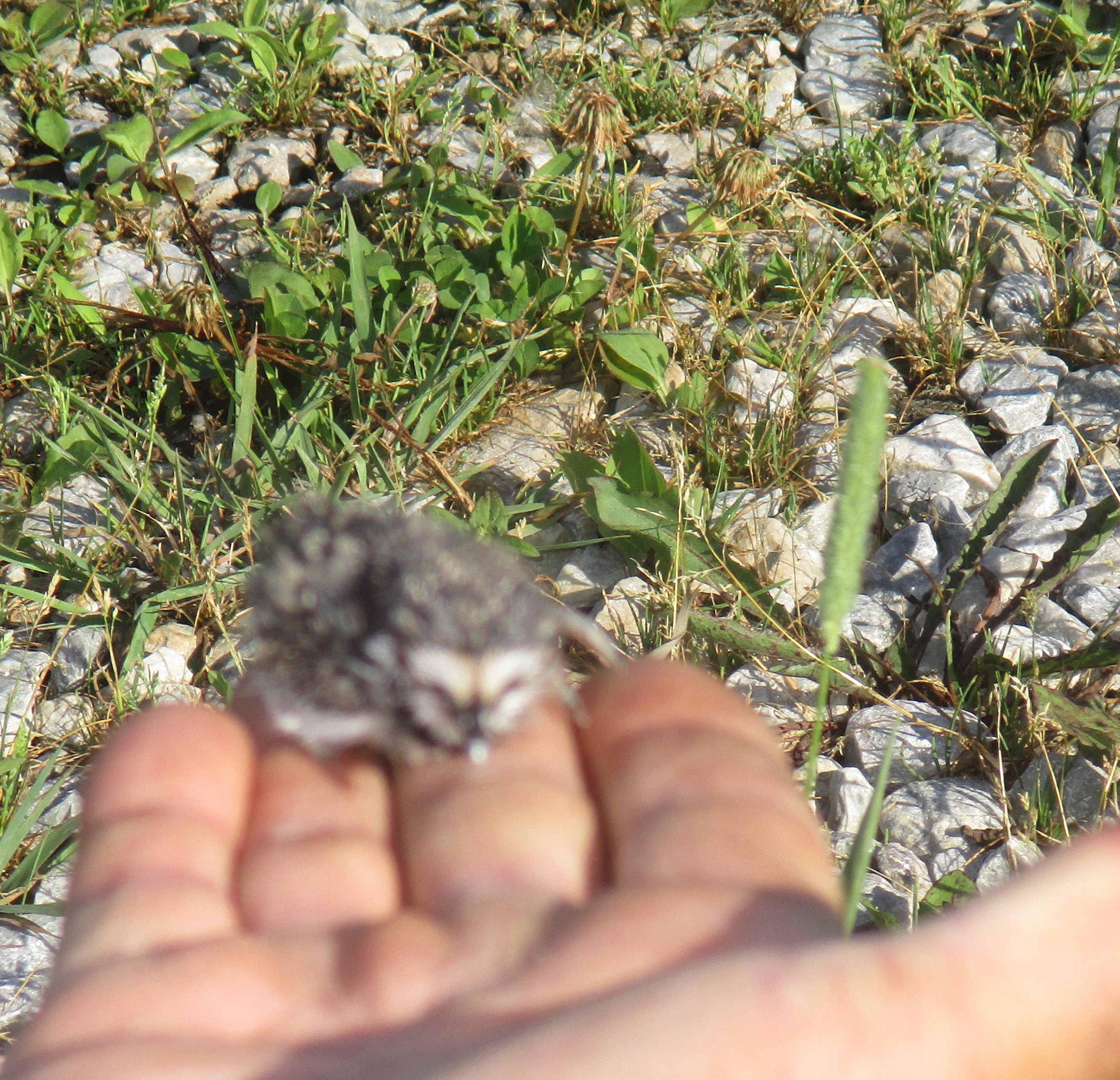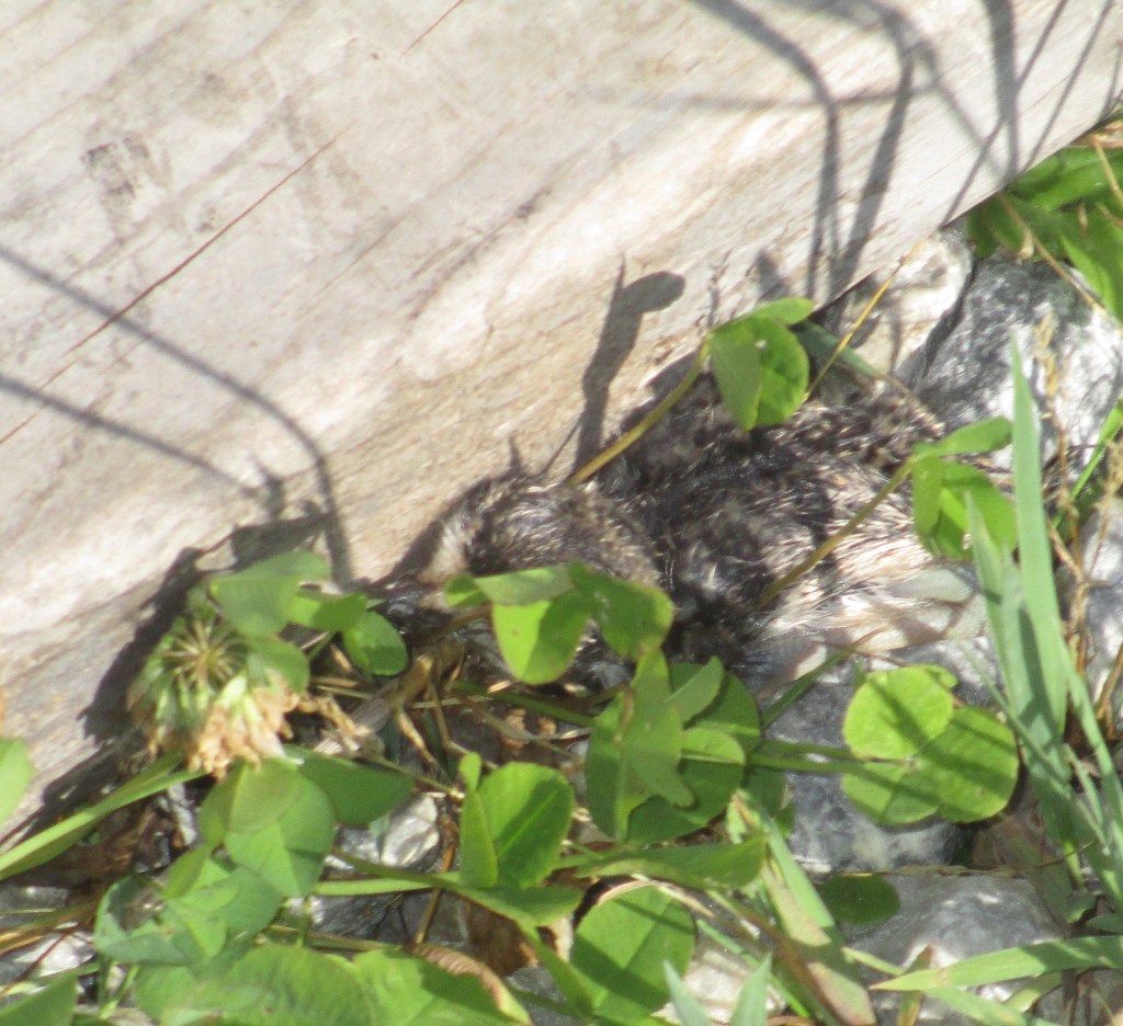 But in about a week this killdeer and its mate, who decided to nest in the middle of our driveway (forcing us to detour around the area) should have four more babies running around.