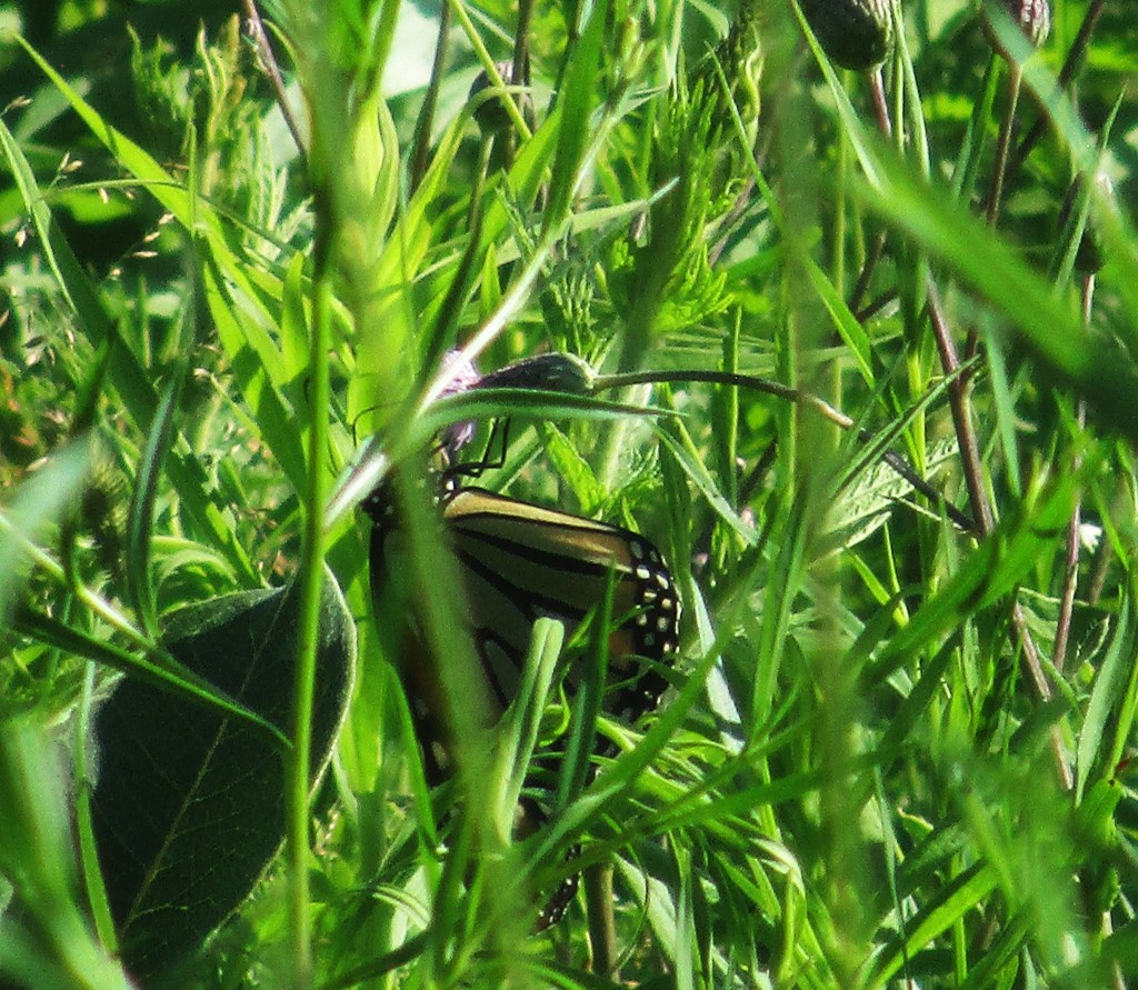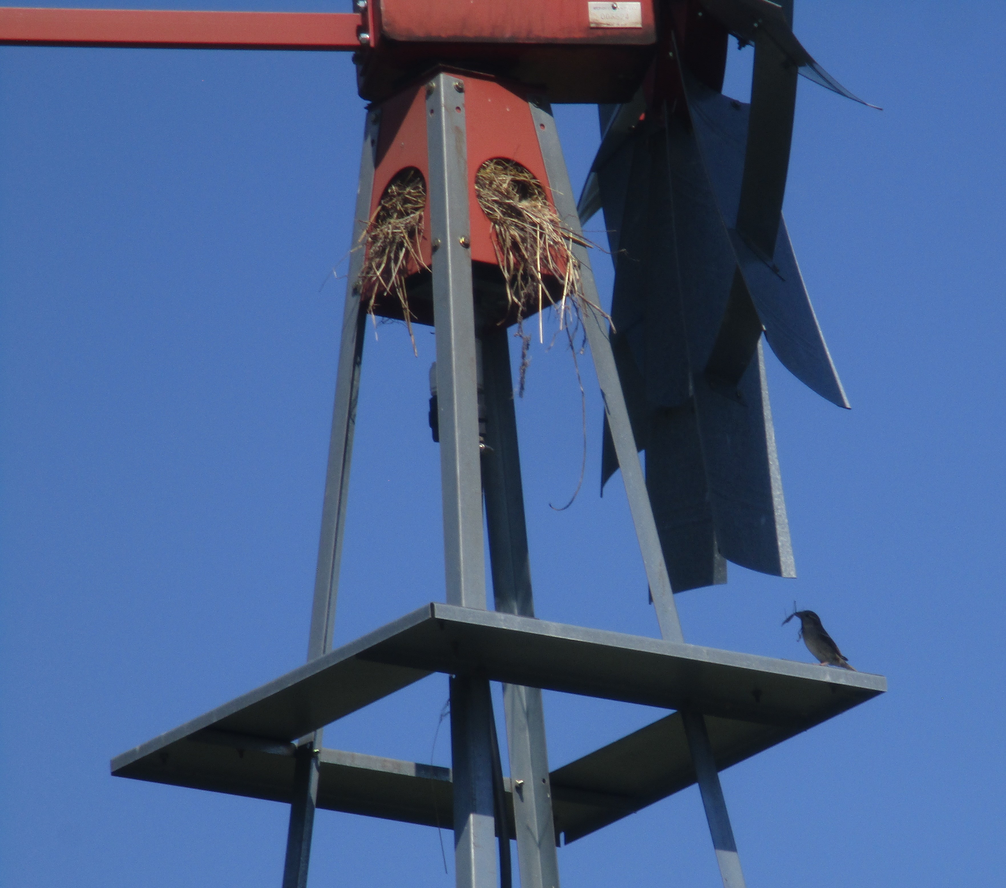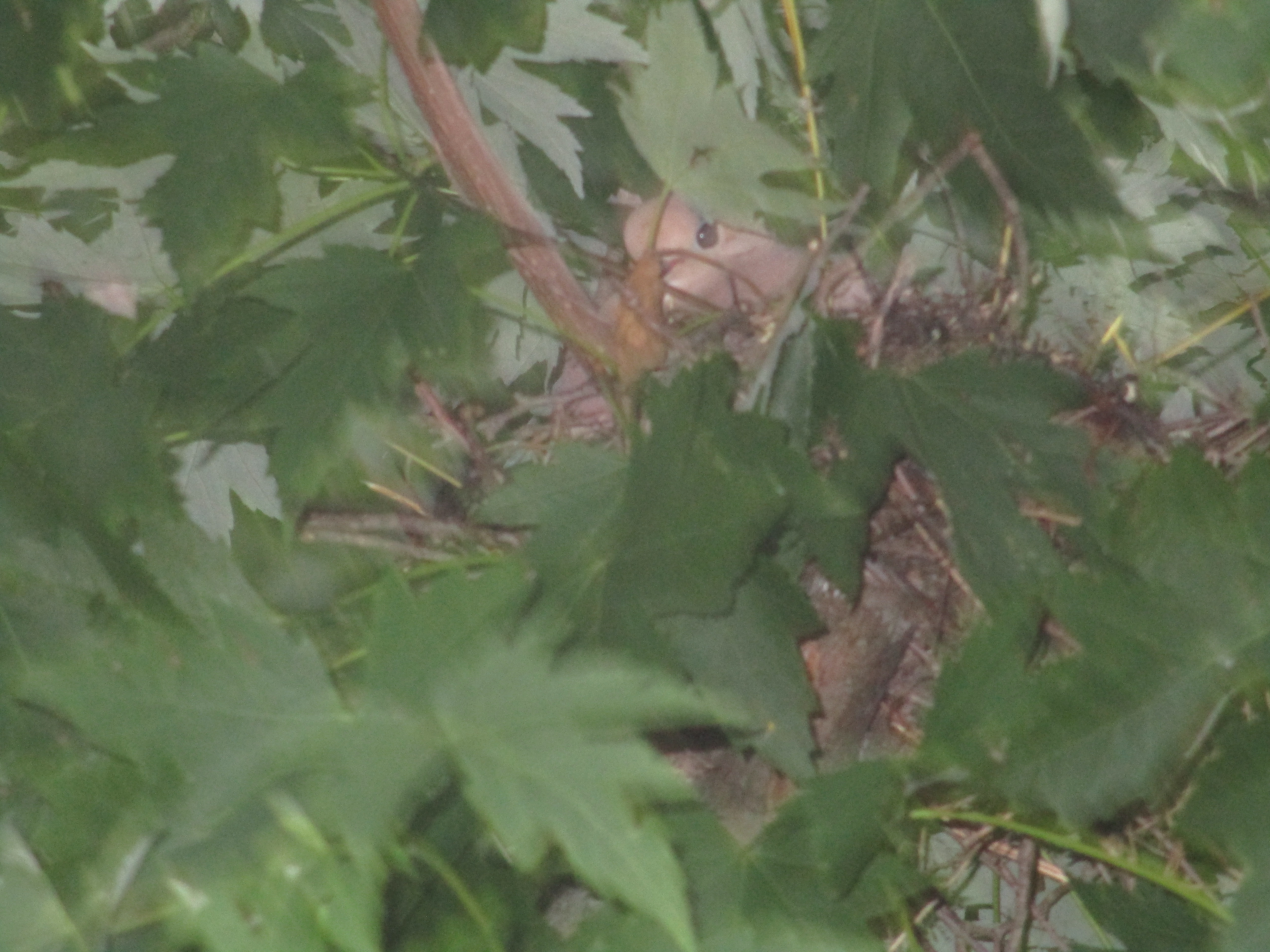 For weeks I’ve been watching this bird sit on the nest. It has probably been both parents that I have seen up there since they share in the job. (I have just not witnessed them changing places.) I was beginning to wonder if there were really eggs and if they would ever hatch. I never heard babies (cheep, cheep, cheep) in the nest nor did I see parents bring food to their young.