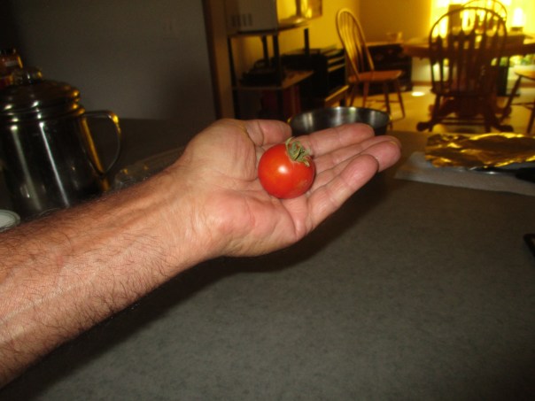 It’s not time for making tomato sauce yet but we did pick our first (2) ripe tomatoes. One for each of us. They were small but delicious.