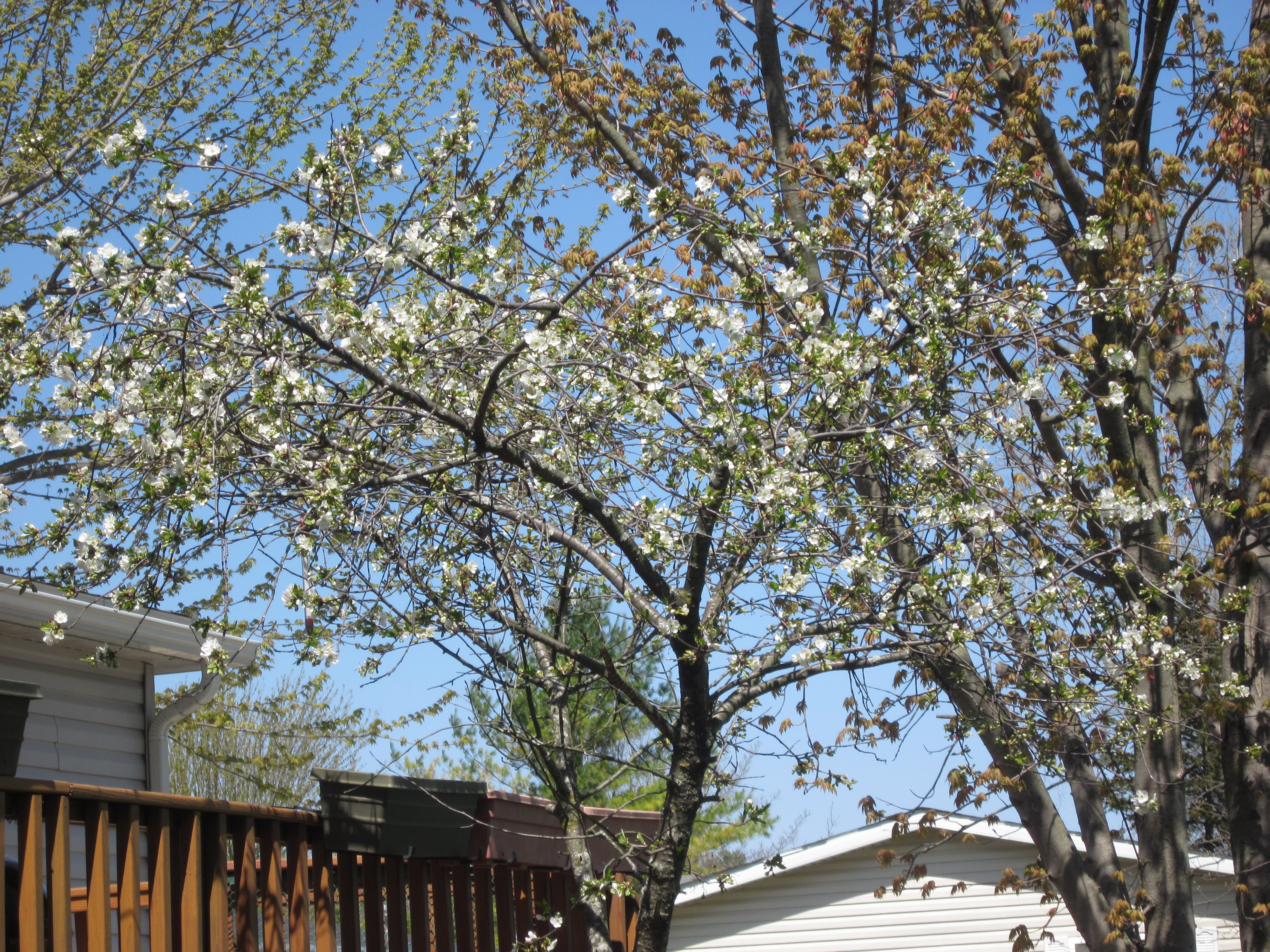 Sunday evening my husband was sitting at the picnic table under the big oak tree. He said he could hear a lot of bees buzzing, and when he looked up, he spotted this large swarm of bees that had landed in the oak tree.