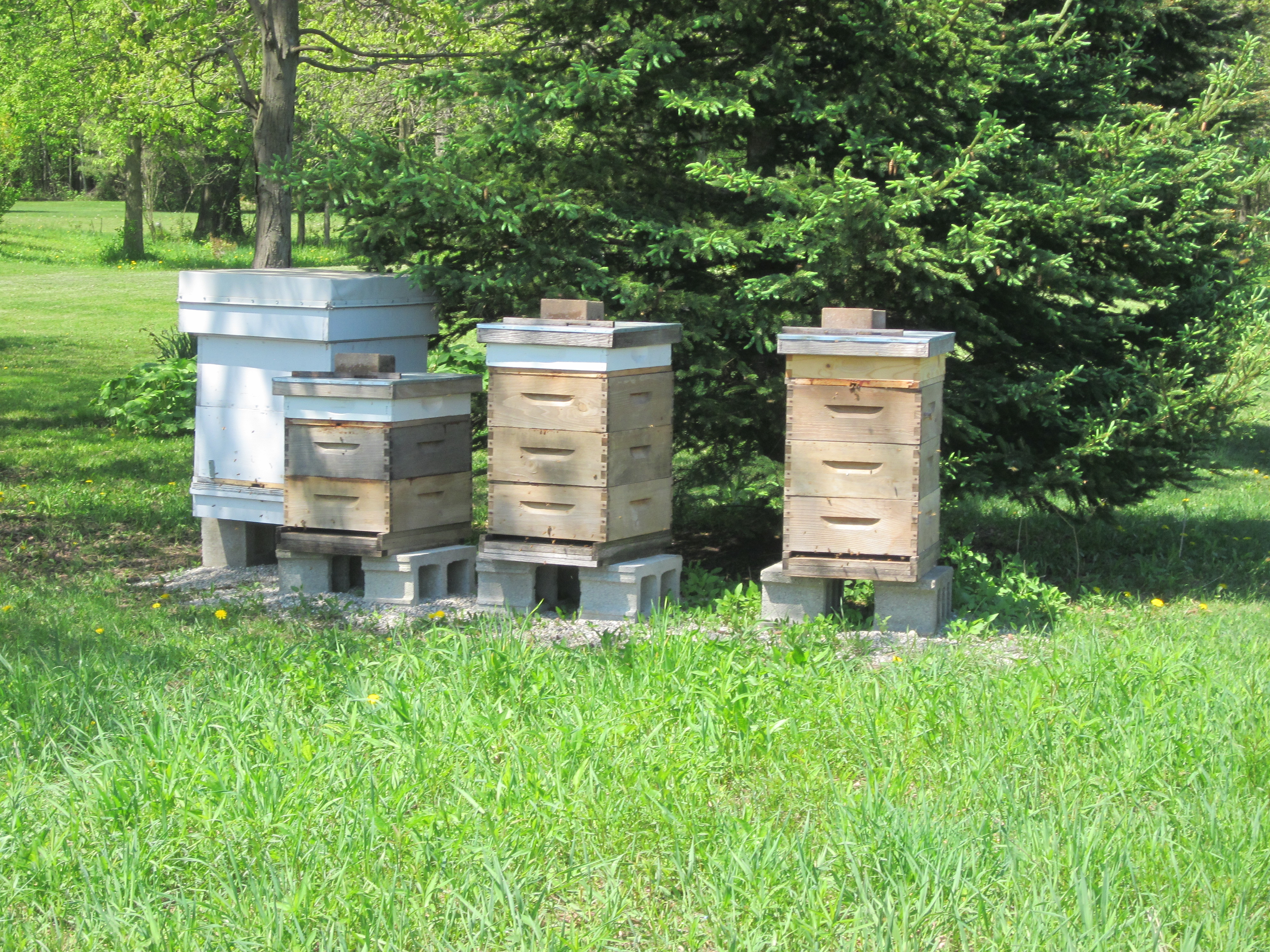 He wasn’t prepared to capture them that evening but decided if they were still there Monday morning he would because A) these bees came from our son-in-law’s hive that had survived last winter so they are apparently a hardy breed of bees. B) We had friends from out of state who were coming for a visit and picnic at the farm Monday afternoon, and we didn’t want bees buzzing overhead as we visited and ate.