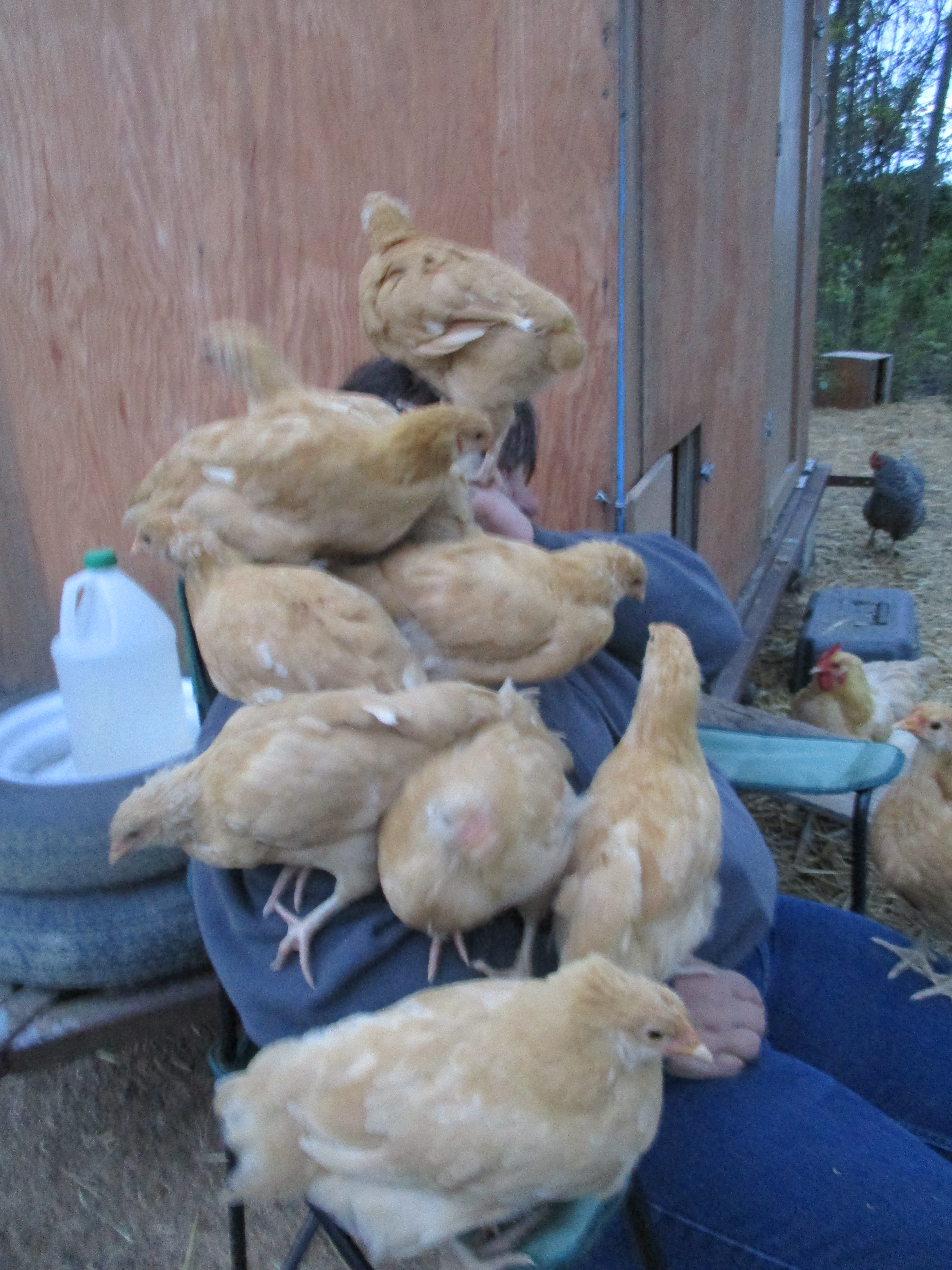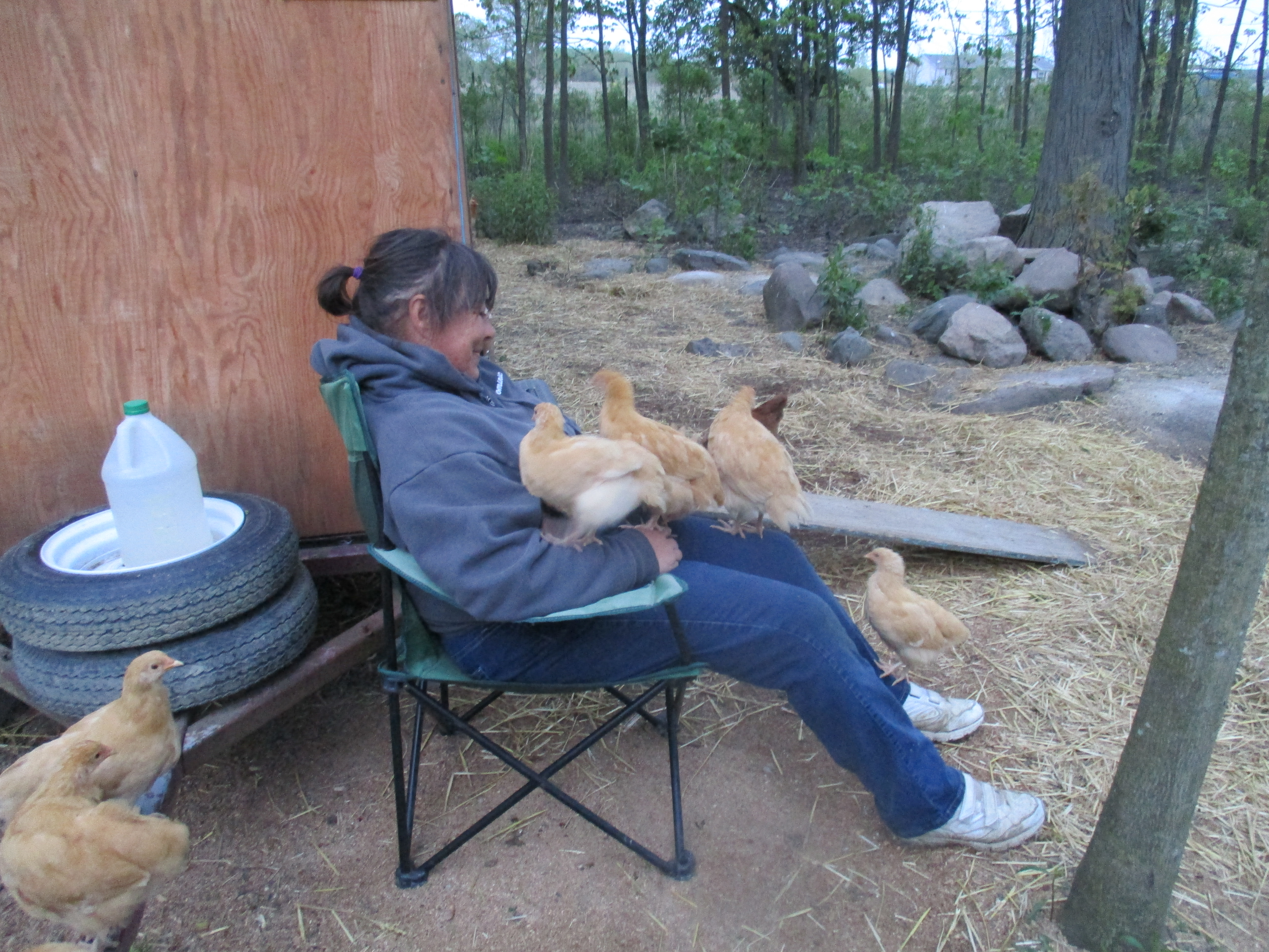 In about 2 weeks I expect we will see the peepers craning their necks trying to see the world beyond the stock tank. They will also have a lot of their feathers and be discovering their wings. They will be able to get on top of the container that holds their water and attempt to fly out of the brooder. Some might succeed. At this time we will have to move them to what I’ll refer to as our second stage brooder. I don’t have any pictures of this so I will give you an update with pictures when the move occurs.