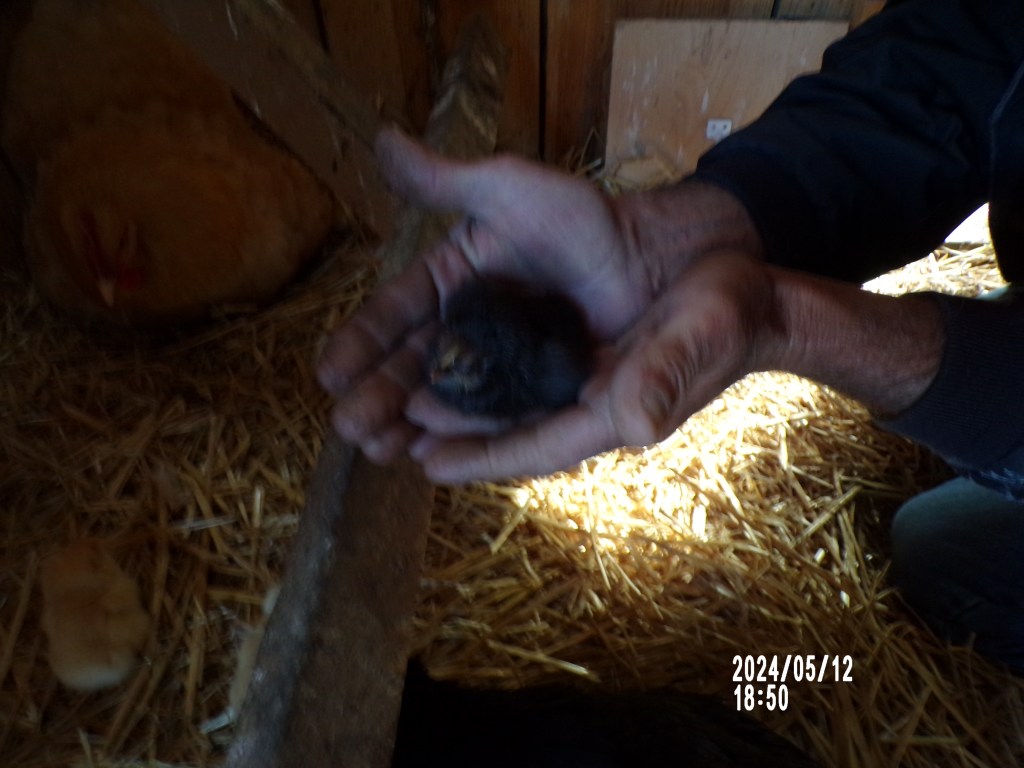 Acting as surrogate parents we got out a galvanized stock tank that works well as a brooder for the first couple of weeks. We used wood shavings for bedding and gave them food and water. I dipped each beak in the water because I was not certain if they had learned to drink yet. We use a heat lamp clamped to the stock tank to keep the chicks warm enough. I also checked each chick’s butt to see if they had poop on it. This is a condition called pasty butt, and if the poop blocks the chicks vent it can cause death. I did find two of the buffs with this condition, so I used a warm wet washcloth to soften the dried poop and remove it.