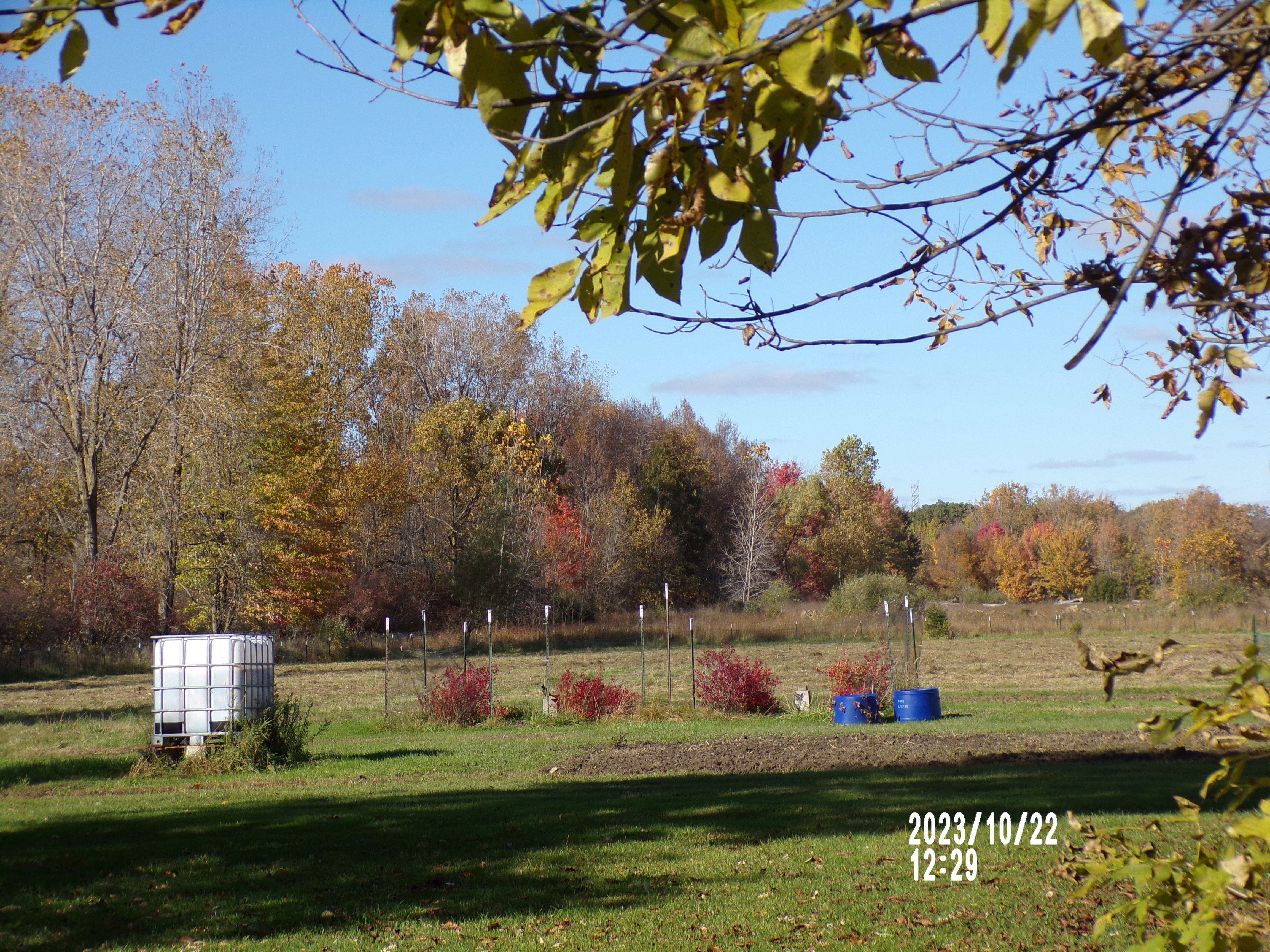 Last week, between rains, we were able to get the back field mowed as we do each fall. We have also taken down all the fences that enclosed the gardens (except for the blueberry patch). The field looks so much different, nicer, this year.