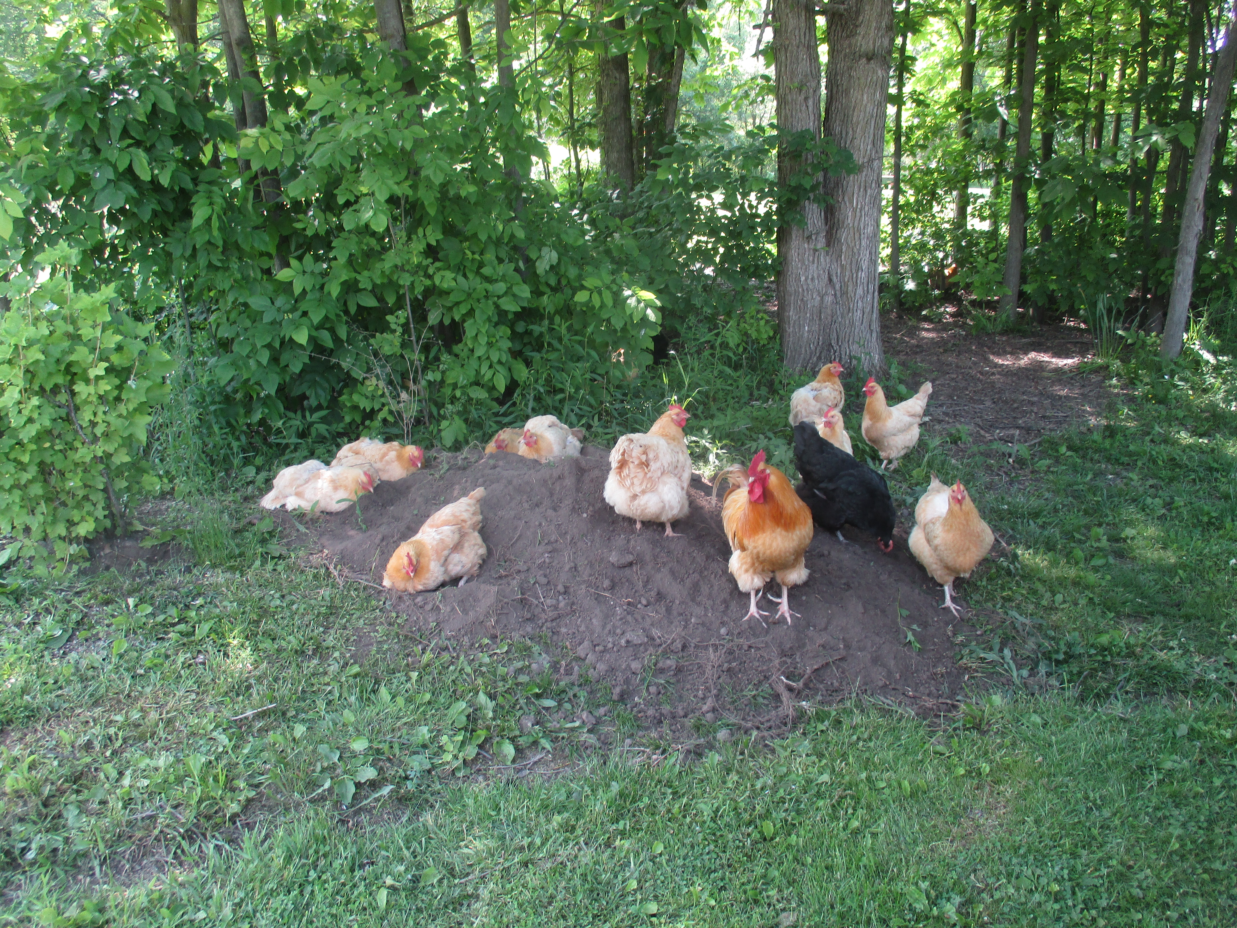 My husband gave the chickens a mound of fresh topsoil to bathe in. We had a very happy flock.