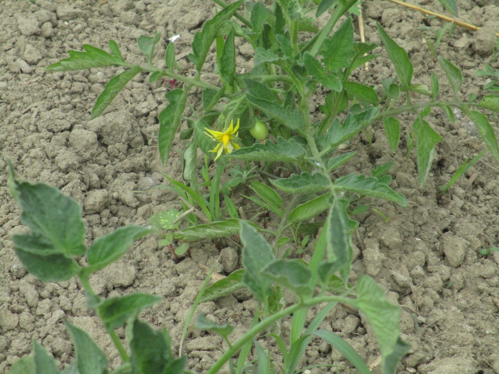A baby tomato, I would not have noticed had I not been on my knees in the dirt. 🙂