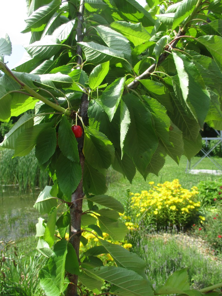 Except for this lone cherry that my husband discovered on our youngest tree (third tree). I never even saw any blossoms on that tree this year. I did pick and eat this last sweet cherry.