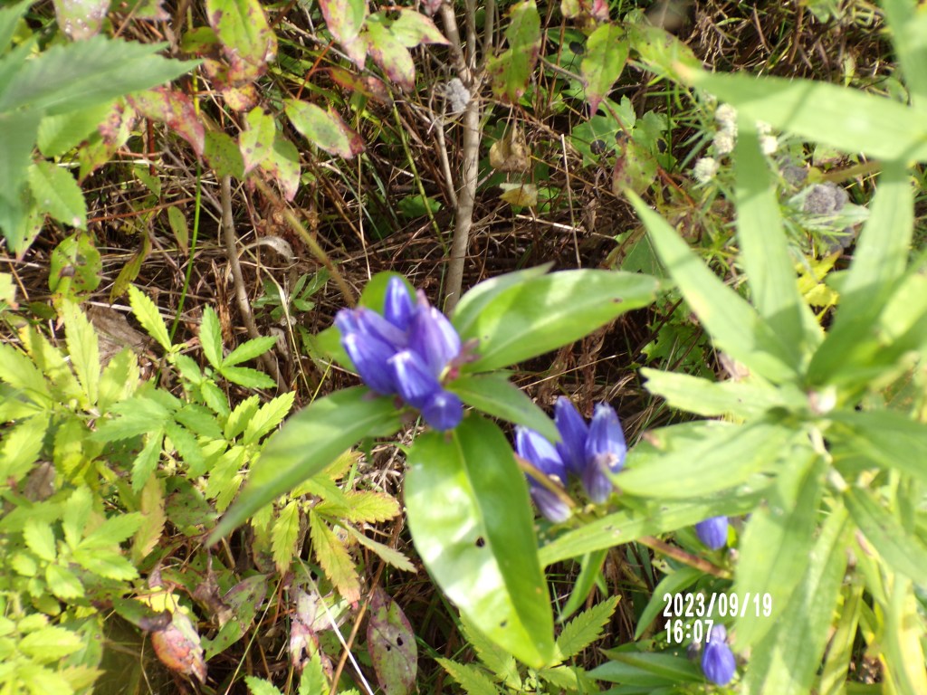 There were several plants tucked away in a corner that we don’t visit too often. I took some pictures and showed my husband. The next day he went to see them and found a tree frog sitting on a leaf of the plant. 🙂 He came home and got a wildflower identification book off the shelf and discovered that this flower is called closed gentian, bottle gentian or closed bottle gentian. It’s a good thing we didn’t wait for the blossoms to open to try to identify it because they don’t, hence the name closed gentian.