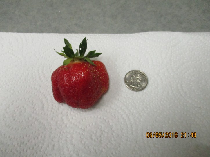 IMG_1347 June 17, 2016Full resolution (5152 × 3864) ← Previous Next → Our first strawberry compared two a quarter.